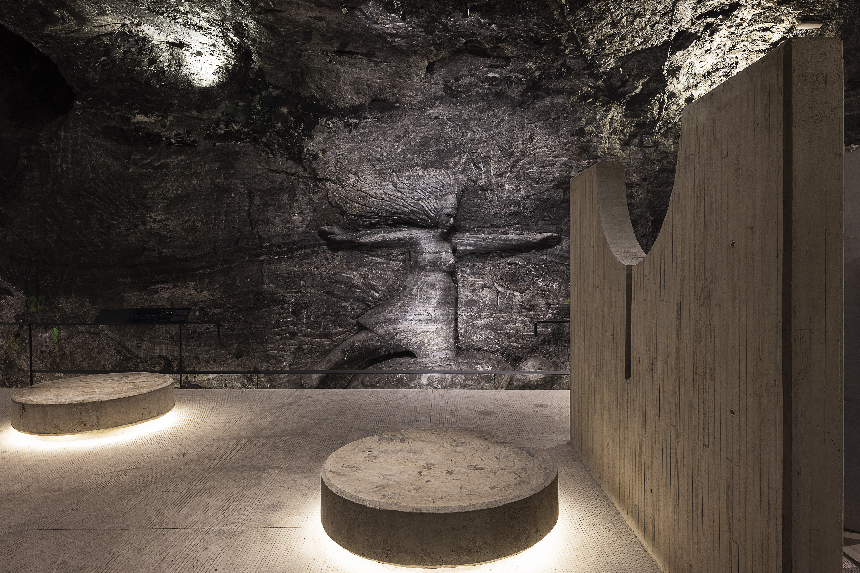 Occupying two contiguous sinkholes interconnected by a tunnel, the museum features bas-reliefs carved into the side walls of the chambers, an area for displaying marble sculptures, a space for temporary exhibitions, and a circular amphitheater for cultural events. Additionally, the museum is complemented by a themed café and a shop for selling artistic objects related to the museum itself.