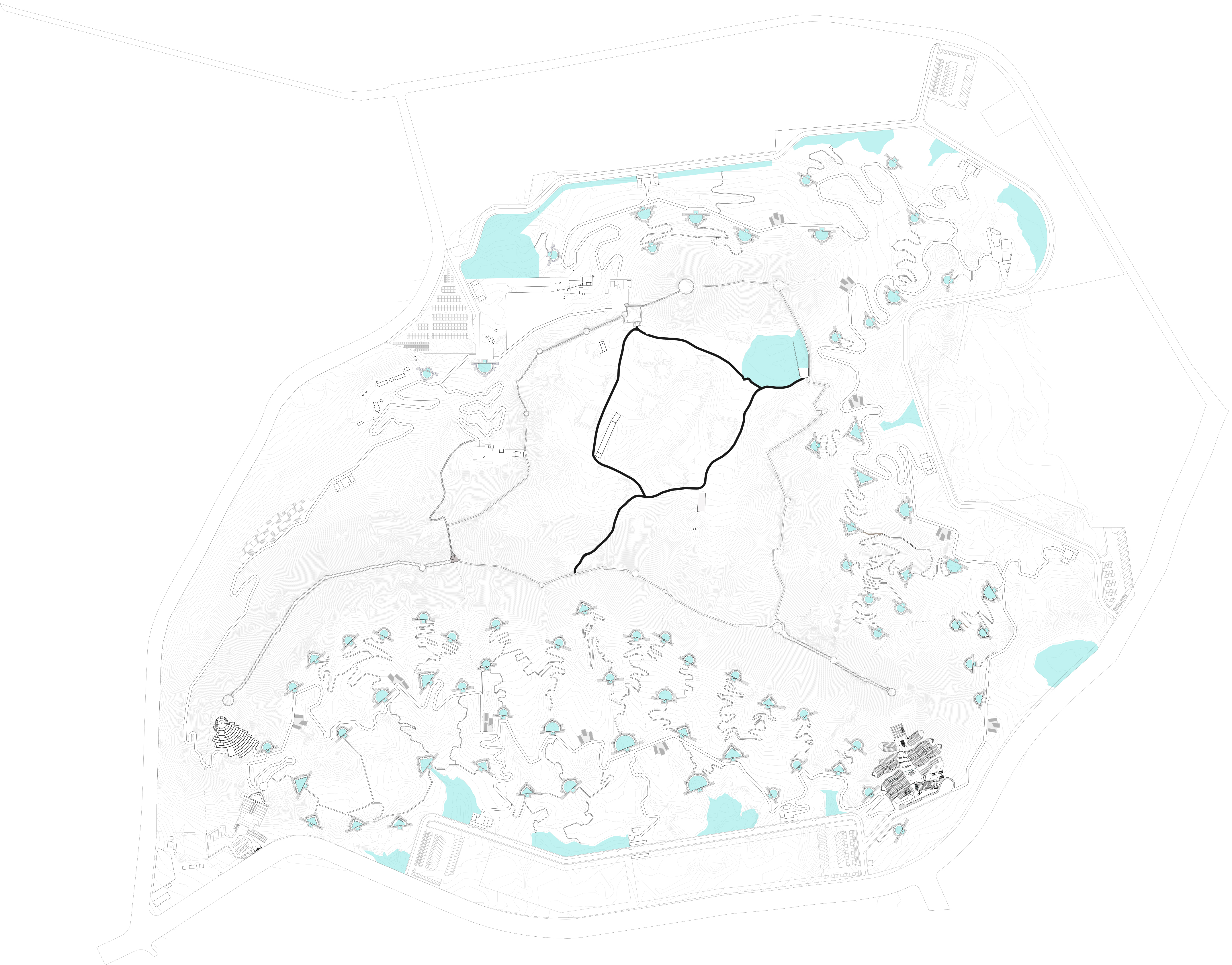 The proposal replaces the trees with water, the nurturing source of all growth, as the primary symbol. The memorial and landscape encapsulate 50 recharge reservoirs that irrigate 150 acres of planted dense vegetation. In so doing, they will nourish forestation and give birth to an ecological transformation.