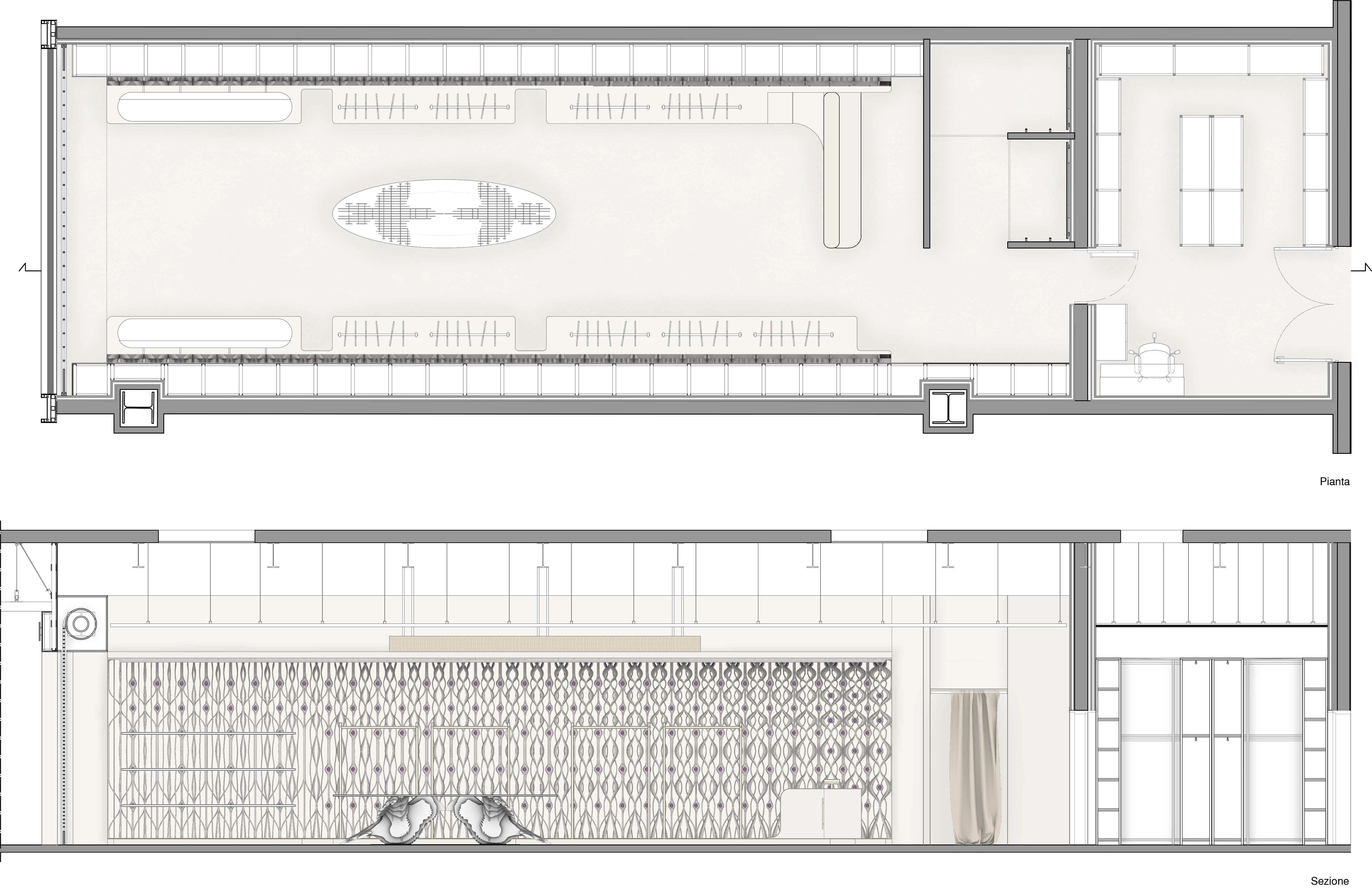 The choice of a monochromatic colour palette has been key to creating a versatile, neutral, and contemporary backdrop, which perfectly complements the garments of the renowned Italian brand and creates an elegant and contemporary atmosphere for the new space.