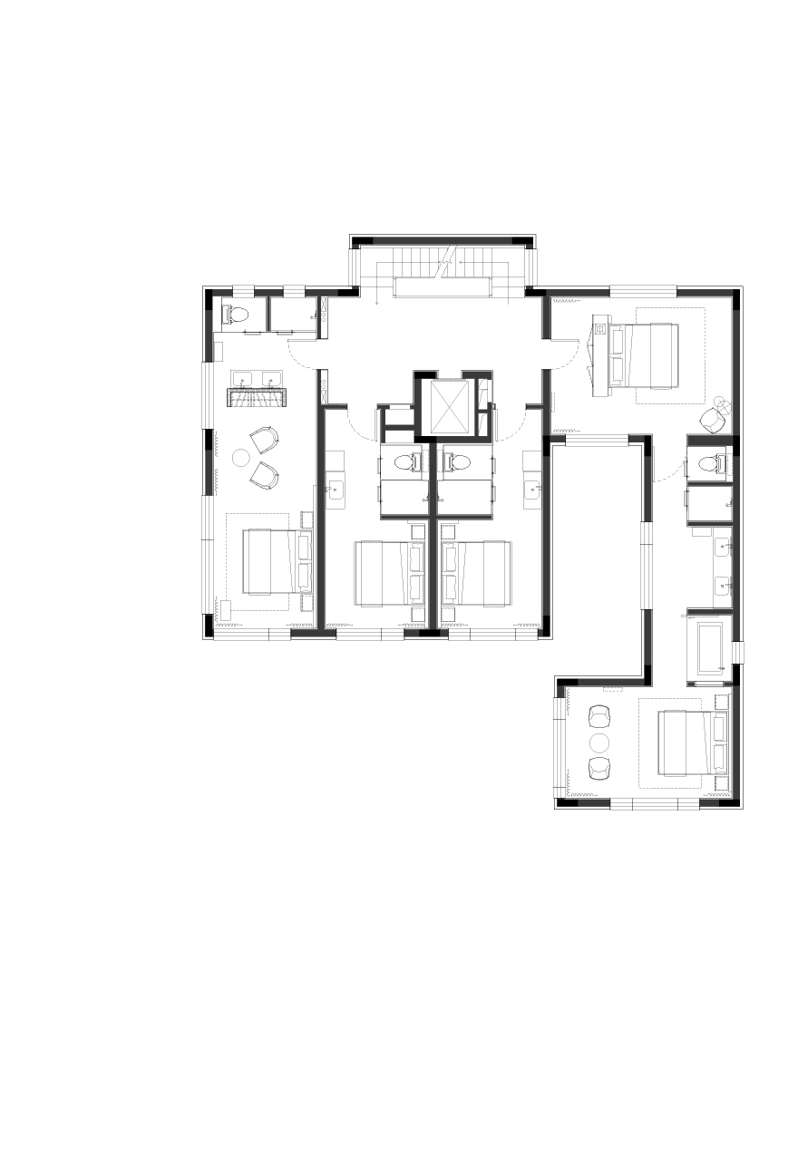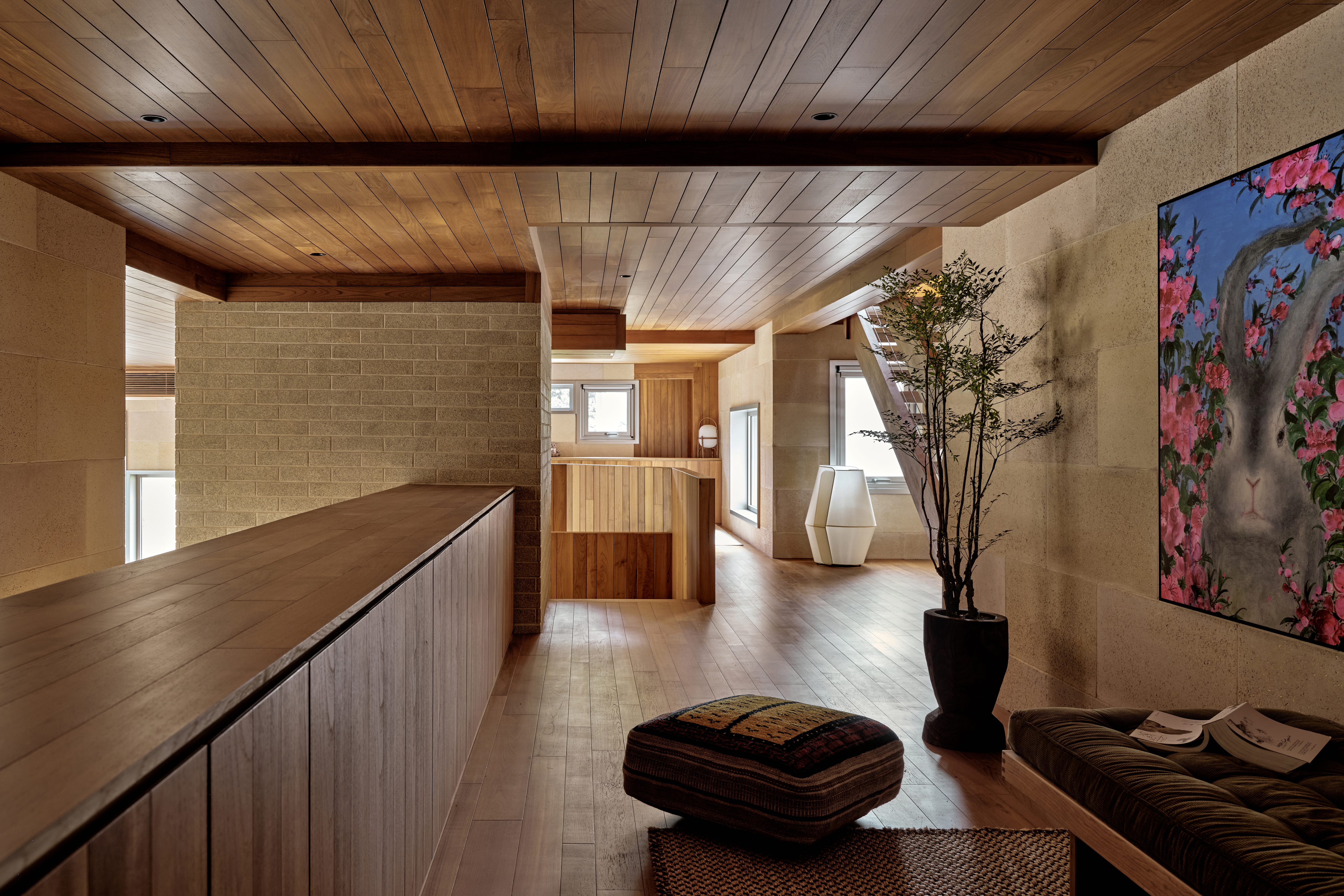 Varied in height and size, they not only adorn public areas but also frame greenery into the rooms, infusing vitality into every living space. Despite housing seven rooms, Gong House never feels overcrowded; each room enjoys its own framed view, heightening the anticipation and enjoyment of family and friends during their stay.