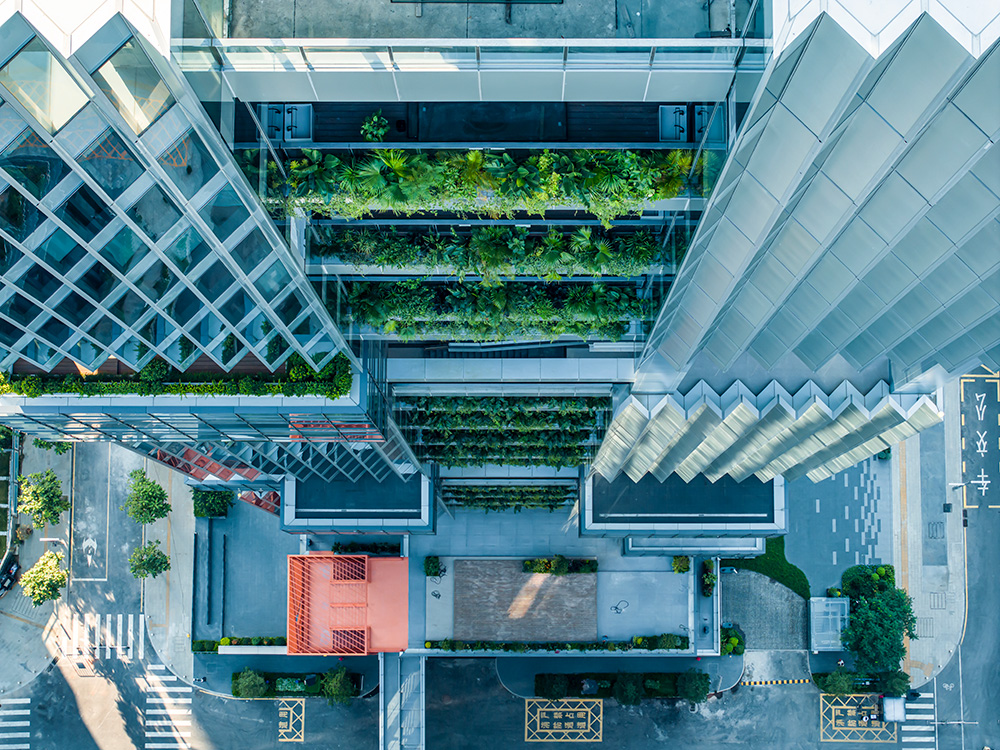 The rapid growth of modern urban lifestyles and cyberspace has led city dwellers to become increasingly disconnected from nature, yet there remains a deep-seated longing for green spaces. T33 Full-Time Center addresses this by connecting with eco-friendly green spaces within the urban skyline of Shenzhen. Instead of segregated floors and units, the entire space is divided into three vertically integrated green ecological systems and interconnected public function blocks. This is a smart structure that sustainably facilitates a seamless blend of work, life, and leisure. The three irregular masses of transparent glass that soar high form three-story outdoor terraces accessible via vertical staircases. Beyond the recycling of construction materials and the integration of smart technology, the architect designed the center to reflect the living and working environments desired by workers. This includes flexible workspaces, expanded areas for social interaction, and new-generation office facilities with sustainability in mind. The building incorporates modular units called “cloud hubs” that break down barriers between floors, creating more spaces for interaction and communication. This approach fosters a three-dimensional green office environment that provides shared spaces for interaction with nature. Through six 24-hour interconnected spaces, the T33 Full-Time Center offers a comfortable lifestyle that features a commercial atmosphere and an ideal office environment.