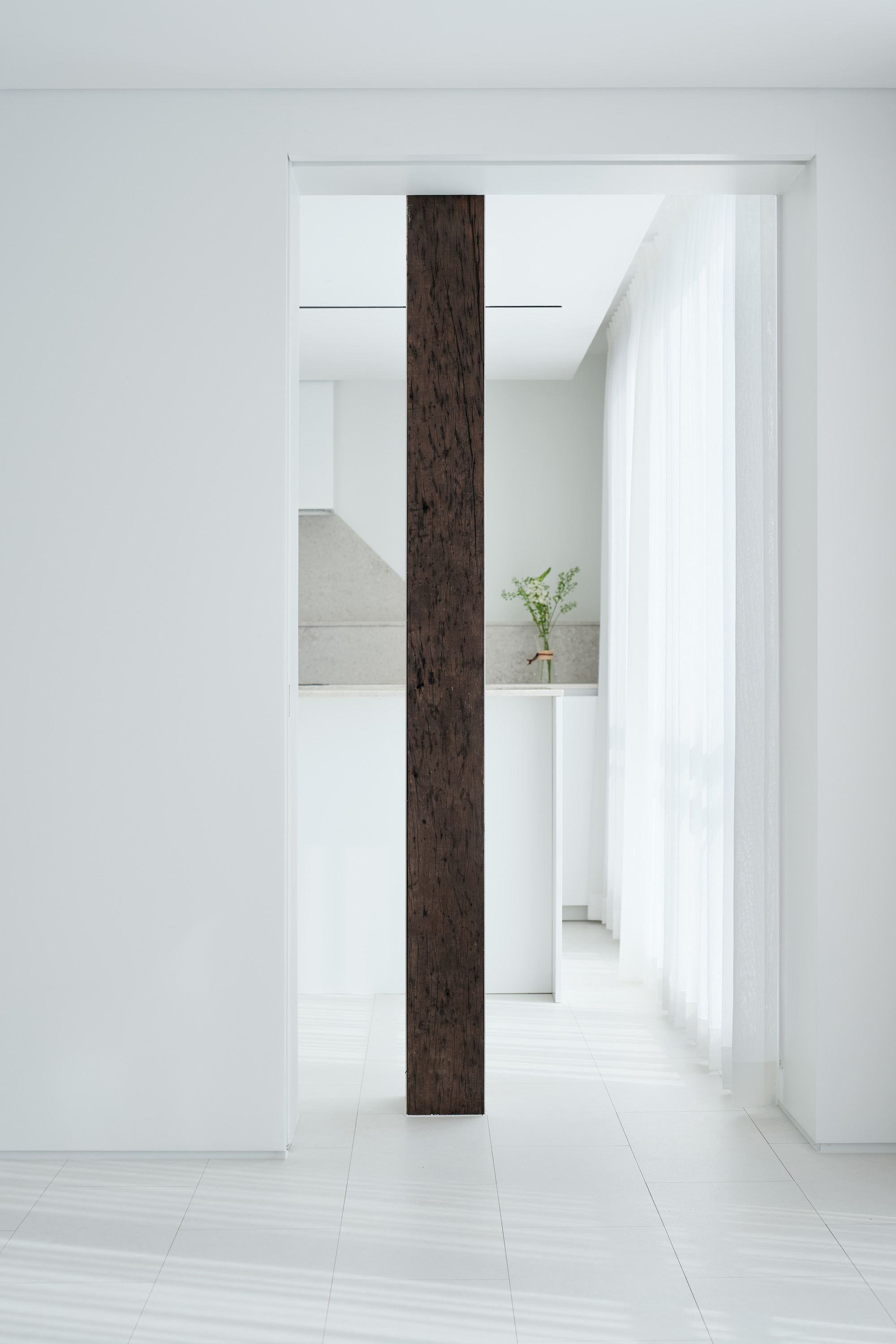 현대의 아파트 구조는 치열하게 바뀌어 왔다. 식사와 요리는 가족, 친구들과 공유하는 즐거움이 되었고 주방과 식당은 주거의 중심이 되었다. 침실은 일반적인 침대 생활과 함께 특성화된 개별 실로 자리 잡았다. 디자이너는 빛을 절제하는 것이 오히려 장점이 될 수 있는 침실을 북측으로, 손님을 맞이하고 가족들이 모여서 시간을 나눌 수 있는 주방을 남측으로 배치했다. 세탁실은 드레스룸과 연계성을 높이고, 스타일러는 현관 가까이에 배치하여 외투를 정리하는 위치를 정의한다. 확장된 발코니는 서재와 주방으로 접근하는 기존 동선을 살려서 앙필라드(Enfilade) 형식으로 배치했다. 우수관은 동선을 가로막는 장애물에서 새로운 오브제로 해석할 수 있도록 디자인했다.