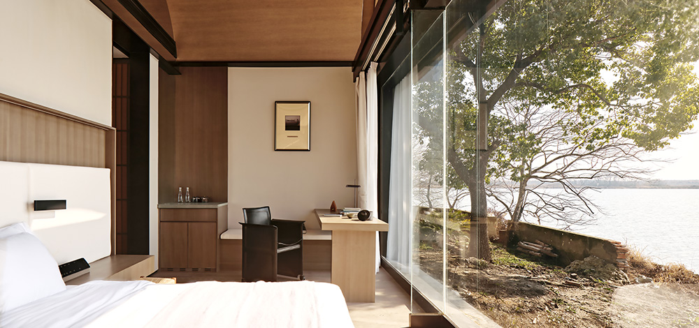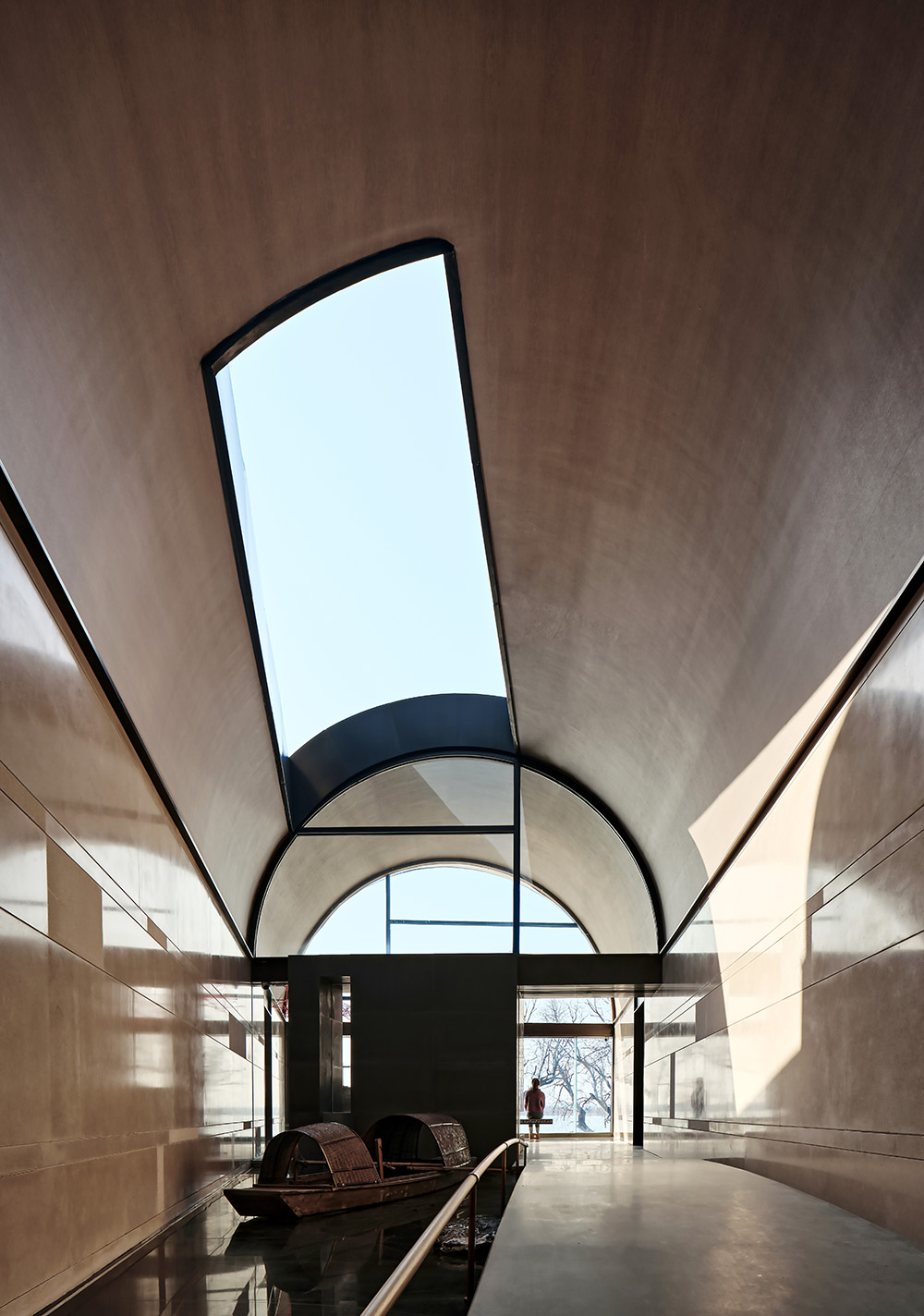 쑤저우의 산완 마을은 목가적인 마을의 고요함, 조용하고 광활한 강, 역사와 문화가 공존하는 곳이다. 보트야드 호텔은 이 마을의 강둑에 자리잡아 자연과의 친화력 속에서 일상 너머의 평화와 자유를 찾게 한다. 매 순간 포착되는 이미지는 공간과 시간의 교차점에서 만나 자연과 풍경, 빛의 디자인을 인공적으로 만들어 낸다. 호텔로 향하는 다리를 지나면 바닥부터 천장까지 이어지는 커다란 창이 시야를 연다. 수평 공간과 아치형 지붕은 긴 두루마리처럼 강둑의 풍경을 차지한다. 물의 패턴을 형상화한 벤치는 방문객이 호텔의 반대편에 있는 자연을 구경할 수 있는 공간을 마련한다. 산책로를 따라서 독서와 커피를 즐길 수 있는 휴식 공간이 자리잡고 있다. 1층에서 2층까지 마련된 객실은 들어오는 빛을 통해 내부로 향한 시선이 만들어지는데, 2층 객실의 천장까지 이어진 창문은 야외 풍경을 안으로 충분히 들이는 역할을 한다. 호텔에 자리잡은 ‘도크 보트’ 파빌리온은 호텔을 방문한 사람들이 평화로운 휴식을 즐길 수 있도록 반쯤 잠겨있는 시간을 상징한다.