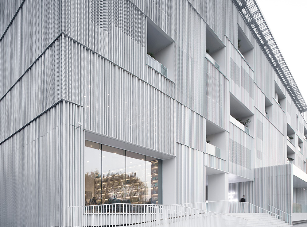 다밍후 100 문화아트 센터는 오랜 전통을 갖고 있는 대명호(DaMing Lake) 남쪽 해안 마을의 건물을 리모델링한 프로젝트다. 기존 건물은 사무실과 호텔로 사용되었으며, 현재는 예술과 문화의 복합 공간으로 탈바꿈하여 심플하면서 독특한 모습으로 지역 사회에 활력을 불어넣고 있다. 디자이너는 구시가지에 새로운 경험을 선사하고, 문화 생활을 이끌어줄 수 있는 장소가 되길 원했다. 이를 반영하기 위해 건물의 기능을 내부에서 외부로 재구성하고, 독립적이고 폐쇄적인 공간을 분리하여 여러 개의 독립적인 ‘박스’를 만들었다. 이 박스는 6층에 걸쳐 자유롭게 쌓이고, 엇갈리고, 압착되어 기둥을 가리는 역할을 한다. 건물의 외피는 박스의 쌓인 느낌을 강조하기 위해 알루미늄 시트로 감싸고, 투과성을 지닌 천공 알루미늄 판은 투명성을 만들어 내며 보행자들로 하여금 이 공간을 인지할 수 있게 한다. ‘박스’ 사이에는 기둥이 없는 다목적 공용 공간을 두어 위층과 아래층 사이를 자유롭게 움직일 수 있다. 코어의 변화는 외관과 전체적인 형태를 반영한 것인데, 남측의 햇빛은 내부의 ‘박스’를 통과하며 내부 공간의 투과성을 높이고 주변 풍경을 더욱 강조한다. 내부는 미술관, 극장, 서점, 창작공간 등 서로 다른 특징을 지닌 복합공간으로 결합되었다. 이로써 예술과 상업활동은 물리적인 경계 없이 함께 어우러진다.