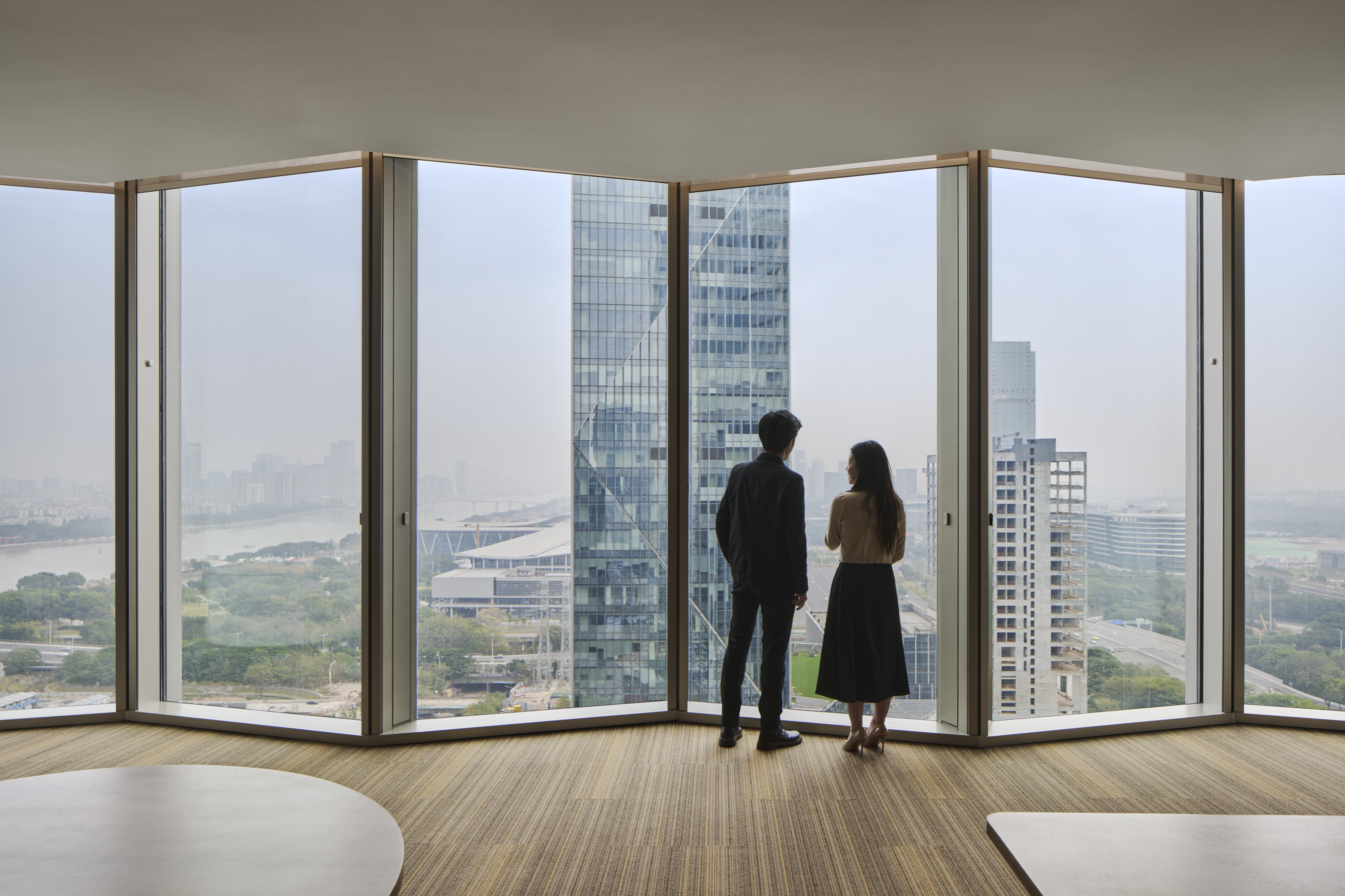 광저우의 파저우 섬(Pazhou Island) 비즈니스 지구에 추가된 스타 리버 본사는 녹지 공간과 지붕이 있는 통로, 소매 및 상업시설이 결합하여 재개념화 된 마천루다. 역사적으로 무역의 중심지였던 파저우 섬은 현대적인 상업 중심지로 떠오르고 있는데, 스타 리버의 새로운 본사는 이러한 변화의 상징이 되었다. 멀리서 보면 건축물의 주름진 형태의 파사드가 점점 가늘어지면서 포물선 형태로 솟아올라 빛과 그림자의 수직면을 만들어 독특함을 더한다. 스타 리버 본사는 에스오엠(SOM)이 자사에서 설계한 또다른 고층 건축물인 광저우 상공회의소와 사니 이로텍 파저우(SANY Irotech Pazhou) 근처에 위치한다. 이 건물들이 모여 파저우의 스카이라인을 새롭게 만들어 내며 풍경과 공공 공간을 통합시키고, 중국 도시를 강화하는 새로운 차원의 업무용 건축물을 선보인다.