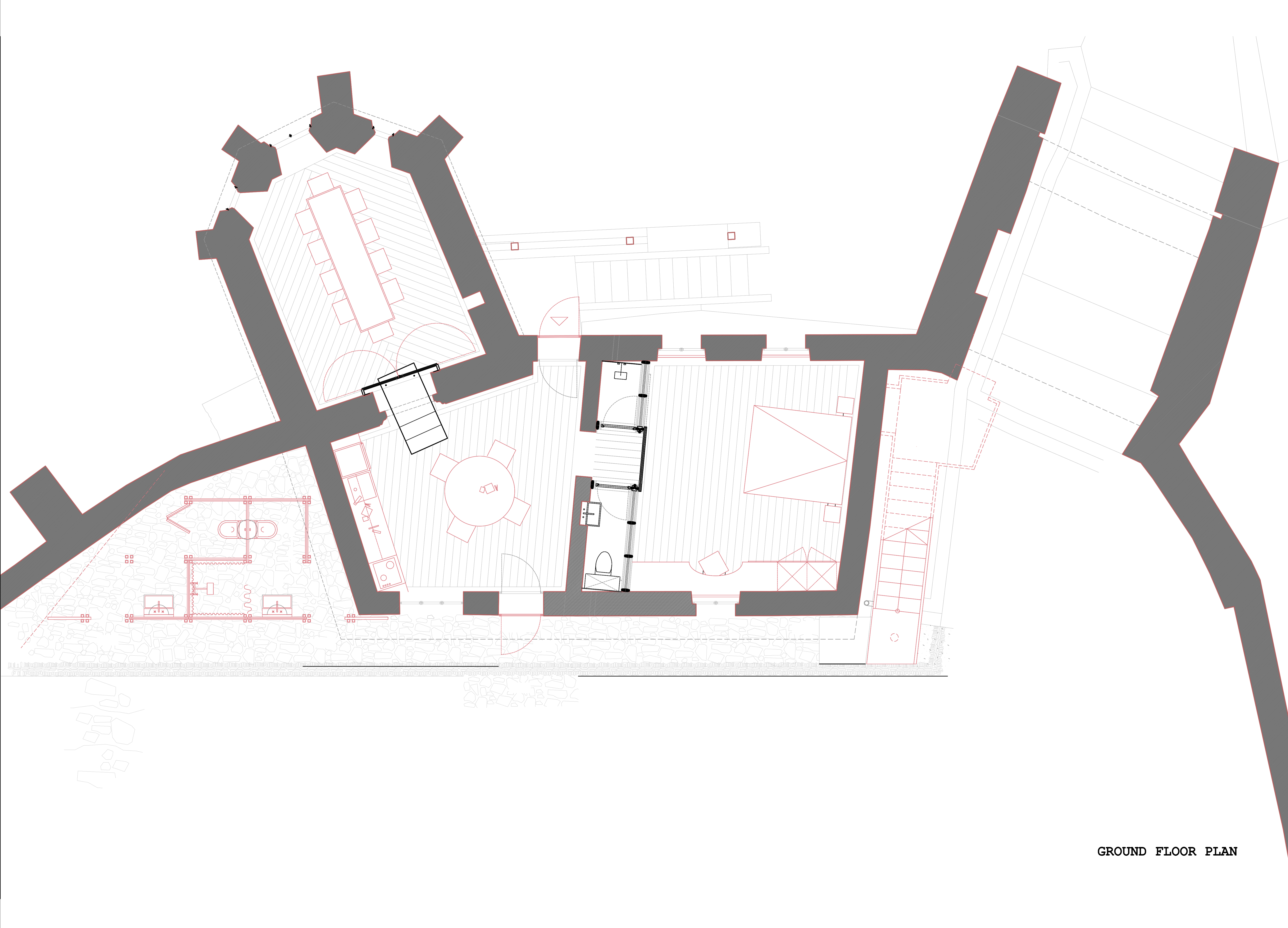 Adapting these spaces for accommodation serves to reintegrate them into both the local and broader community interested in heritage. This requires new spatial configurations. Our approach involves understanding the existing context, identifying valuable features, and deciding on interventions that either integrate seamlessly or highlight through contrast.