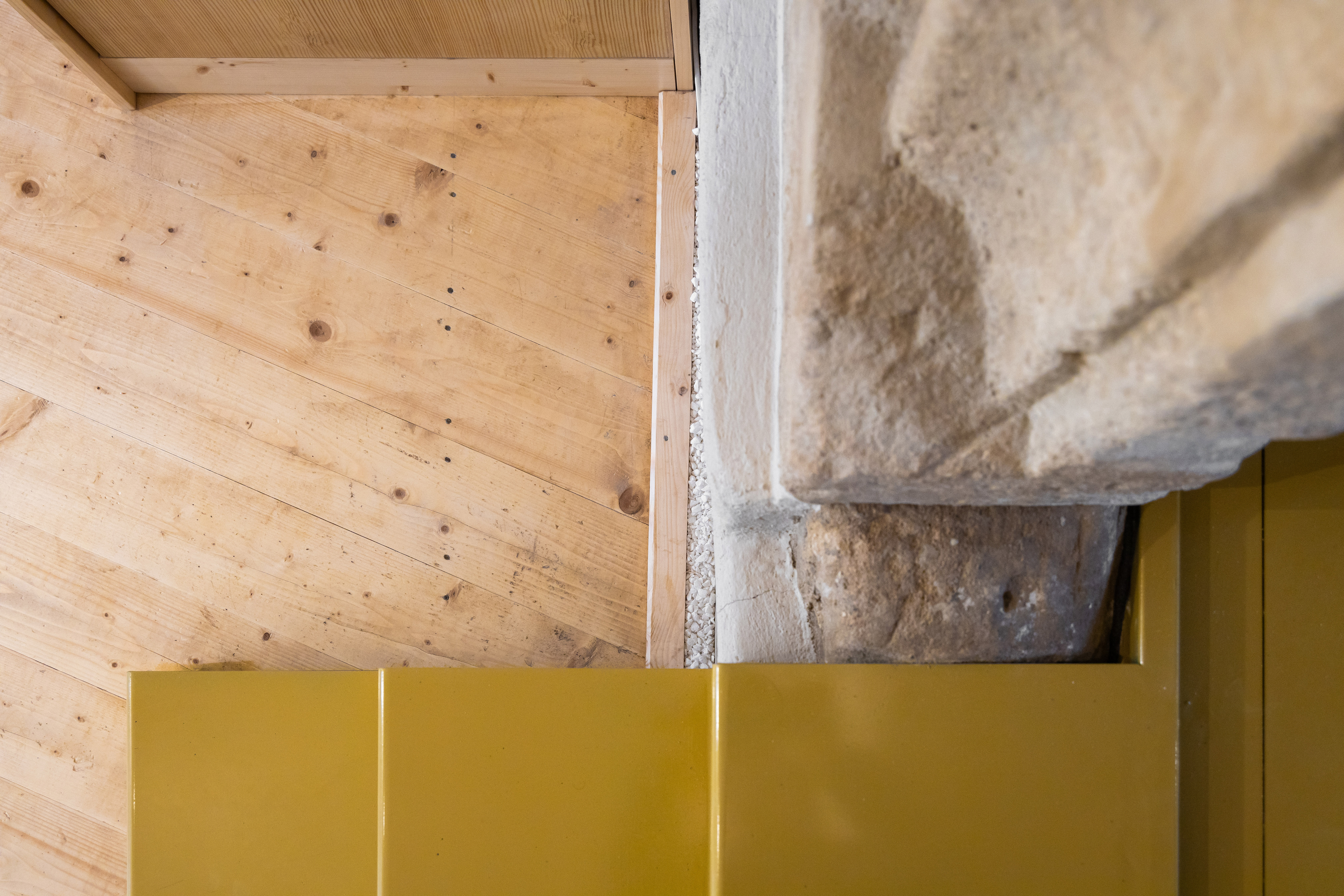 The reorganization of the interior space, necessary for contemporary facilities, respects the historical context by minimizing alterations to valuable spaces. We employ reversible techniques and natural materials compatible with the existing structures. Temporary partitions conceal utilities while maintaining the original orientation of the rooms.