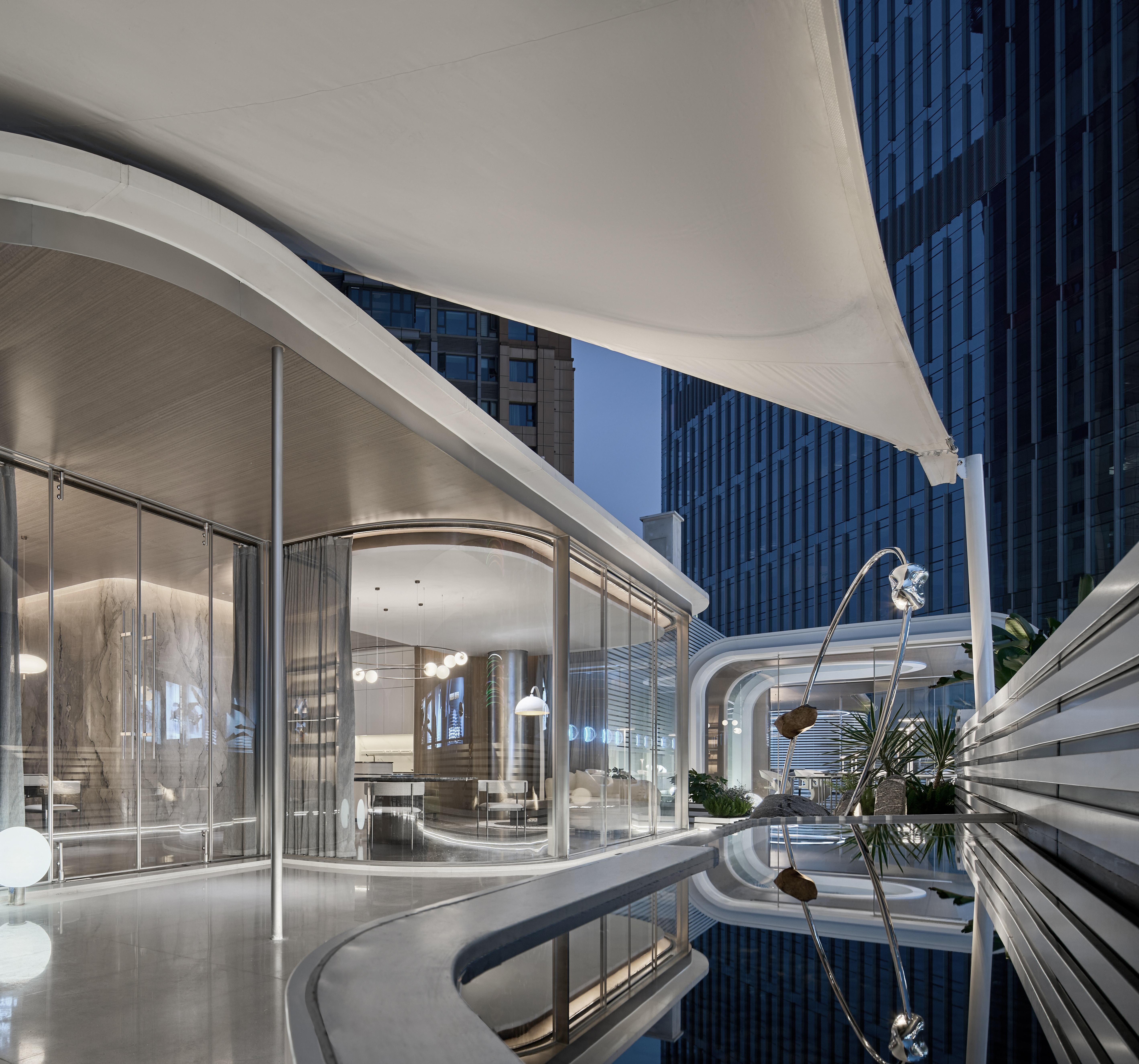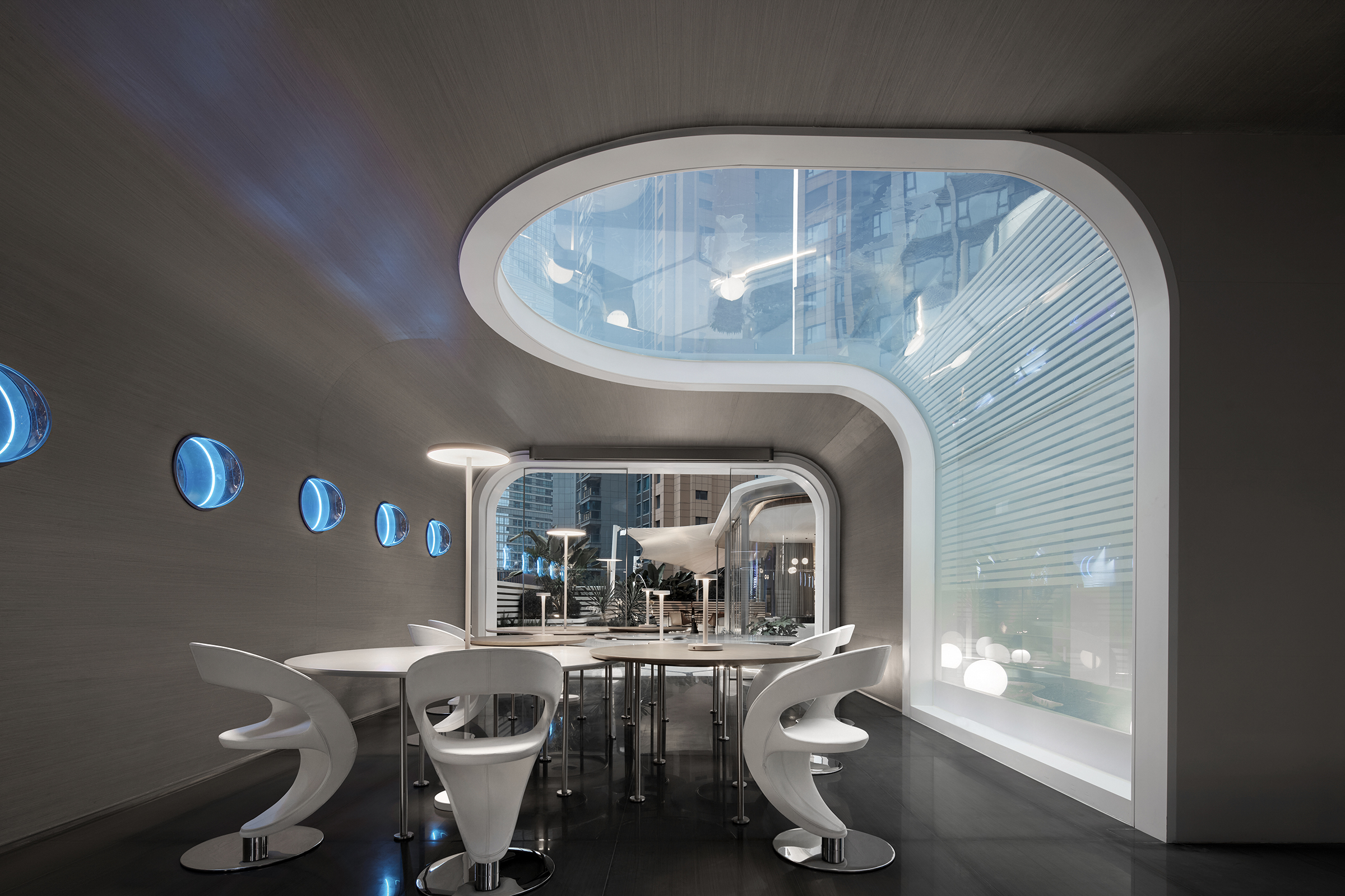 "Ark" is a medical aesthetics pharmaceutical corporate club located on the top floor of a single commercial building. It integrates functions such as showcasing corporate strength, displaying flagship products and entertaining guests. Using modern technological design techniques, it provides an immersive experience that transcends the present and ventures into the future.