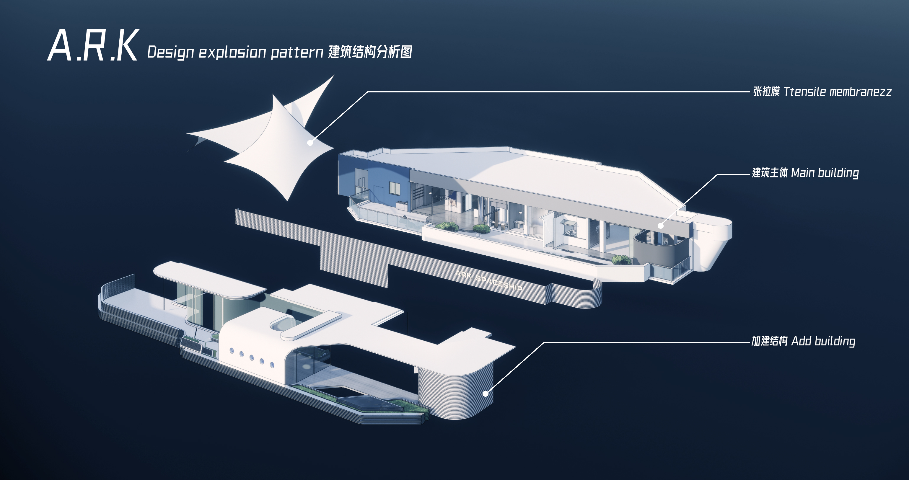 Human imagination of the universe is based on the exploration and thinking of our own existence. The lifespan is constrained by time, which is a fundamental law of the universe. Therefore, it is a lifelong quest for humanity to slow the wear and tear of time in life effectively. In this project, the designer adopted "time and life" as the theme and created a transcendent space. Like an ark carrying the strength of life, it floats in the river of time and space, waiting for people to board, get rejuvenated, and sustain life.
