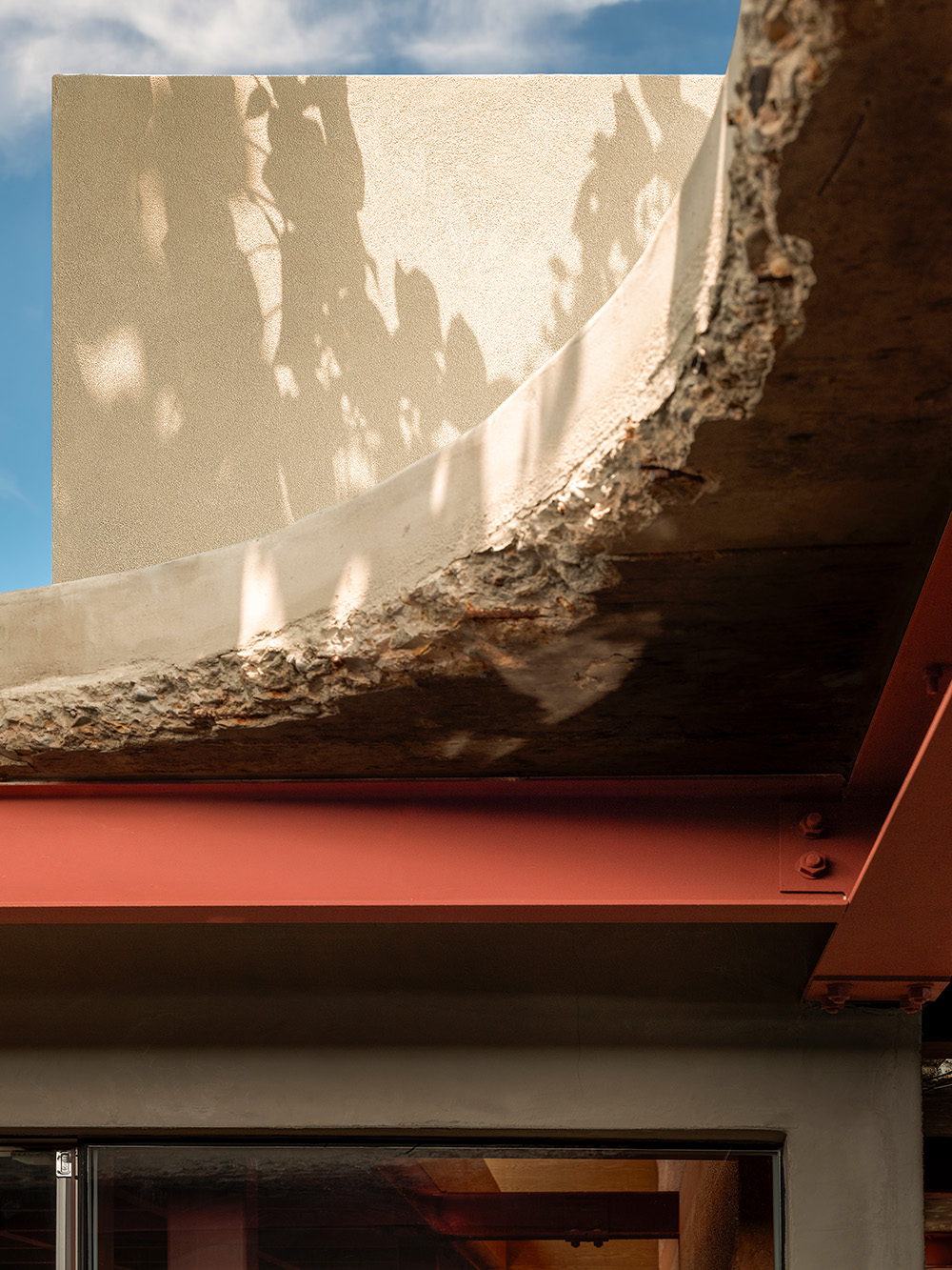 카페 돌돌은 침체된 골목을 개선하고 마을 활성화를 위한 도시재생 프로젝트의 일환으로 리모델링을 진행한 프로젝트다. 건축가는 잠재력을 갖춘 유휴 공간을 새롭게 단장하여 골목과 마을에 활기를 더한 공간으로 만들었다. 평지붕이면서 특색 없는 무채색 철근 콘크리트 건물이었는데, 녹슬고 기울어진 건물과는 대조적으로 마당의 오동나무는 풍성한 잎을 펼치며 점차 몸집을 키우고 있었다. 건축가는 마을의 옛 모습과 세월의 흔적을 최대한 유지한 채 색다른 공간을 경험할 방안을 고민했다. 기존 건물이 가지던 질감을 그대로 수용해 마을 풍경에 이질감을 줄이려 했고, 차가운 무채색의 외관과 대비되는 내부의 붉은 톤은 색 온도감의 대비를 통해 공간을 경험하는 사람에게 반전 있는 다양한 모습을 선보인다.