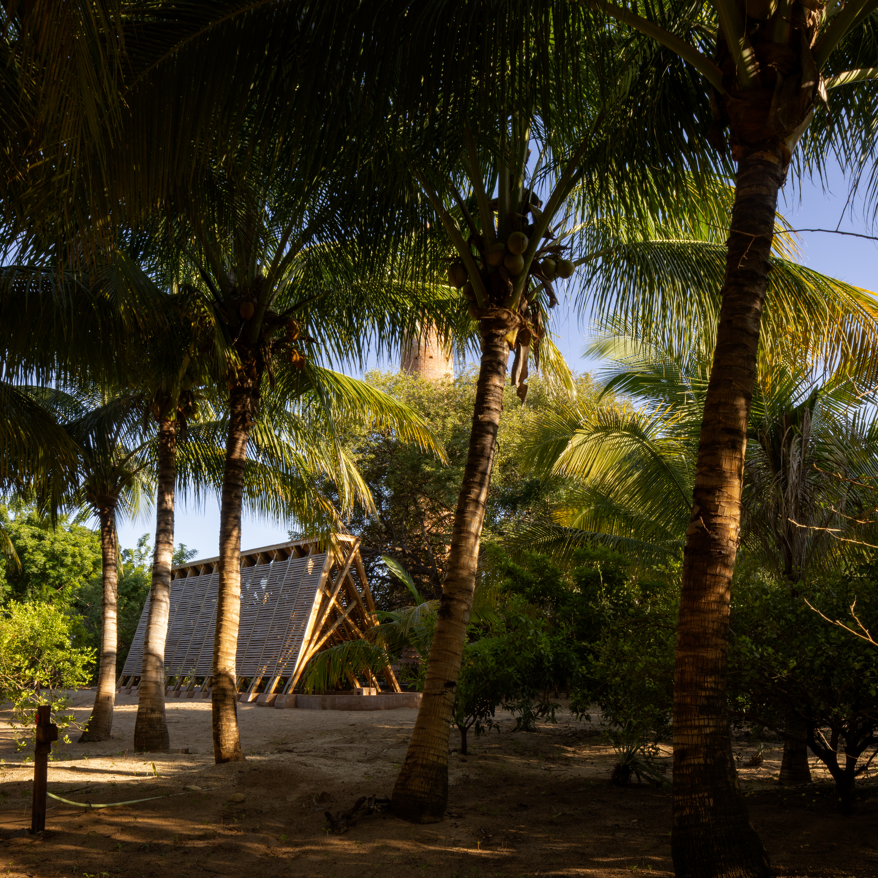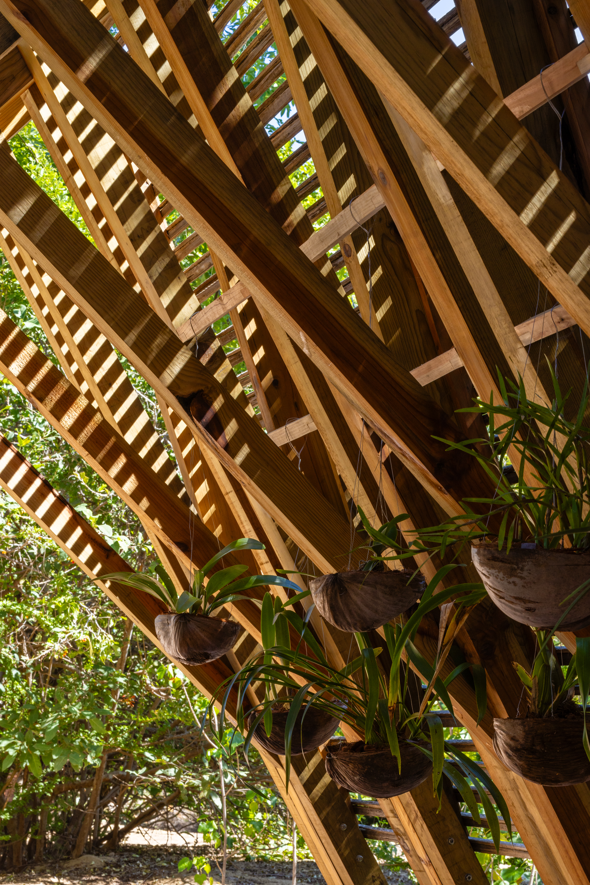 The Orchid Pavilion, designed for Casa Wabi, is located on the outskirts of Puerto Escondido, between the sea and the mountains. It is a wooden structure, permanent, sustainable, and lightweight, dedicated to the conservation of orchids in the Oaxaca region, which highlights the strong relationship between the biological and cultural diversity of the landscape.