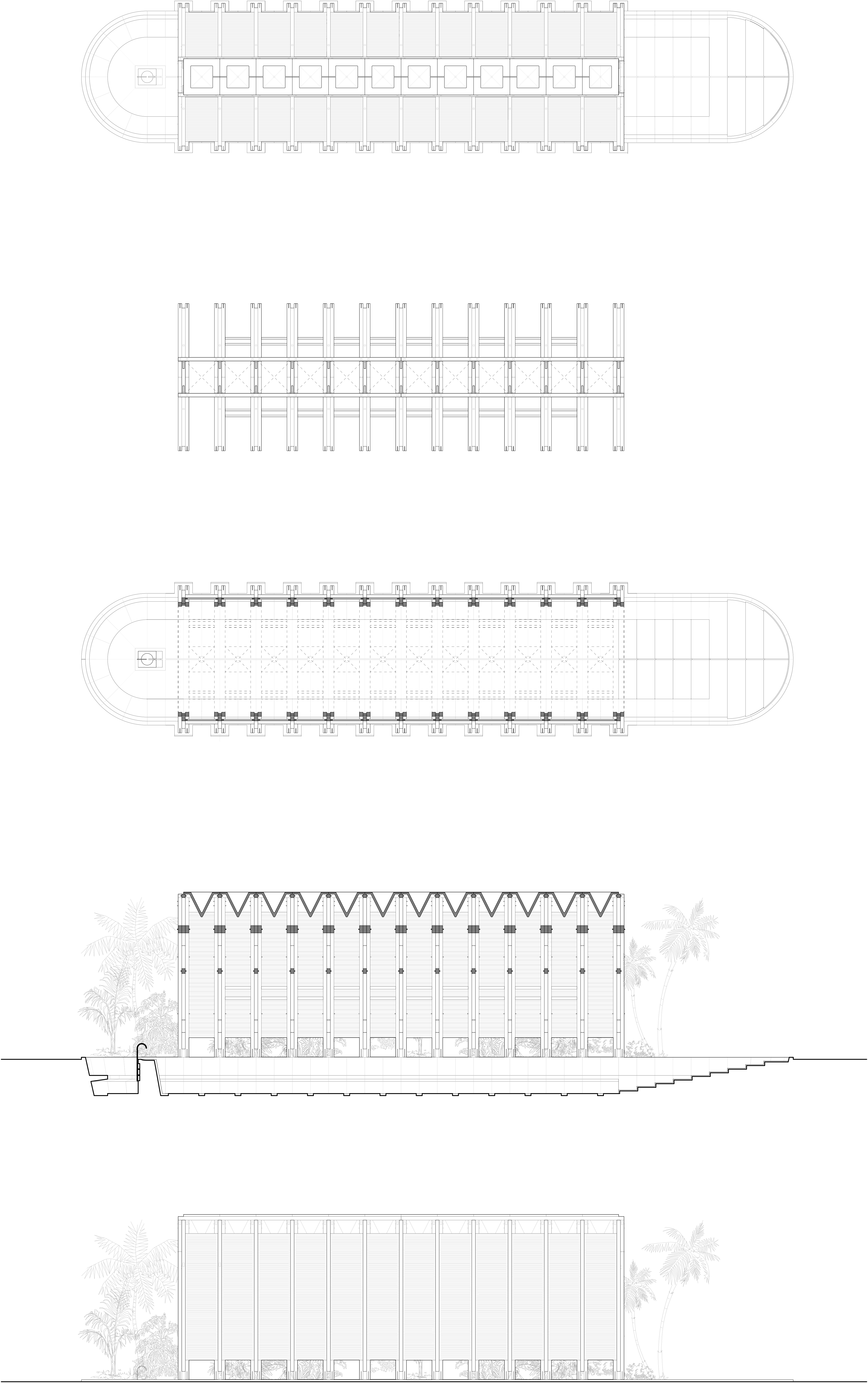 As we approached the design of the Orchid Pavilion at Casa Wabi, our research pointed toward some clear technical features, components, and facts. It became evident that in order to grow, reproduce, and collect orchids, we needed to create the right environment for them to thrive: humid, partially shaded, and well-ventilated
