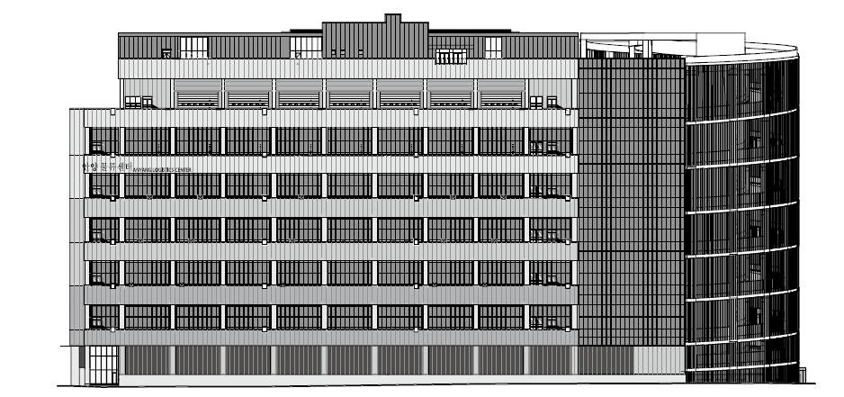 A logistics center focused on storing and delivering low-temperature frozen foods requires high ceilings without windows, and it must allow freight trucks to access all floors. As a result, logistics centers often become large, monotonous masses of buildings, sometimes regarded as undesirable facilities within urban areas. However, the architect of the Anyang Logistics Center turned these mass and vertical movement requirements for freight trucks into a design opportunity. The massiveness of the building was emphasized, and a large cylindrical ramp for trucks became a key architectural element that breaks up the boxy structure.