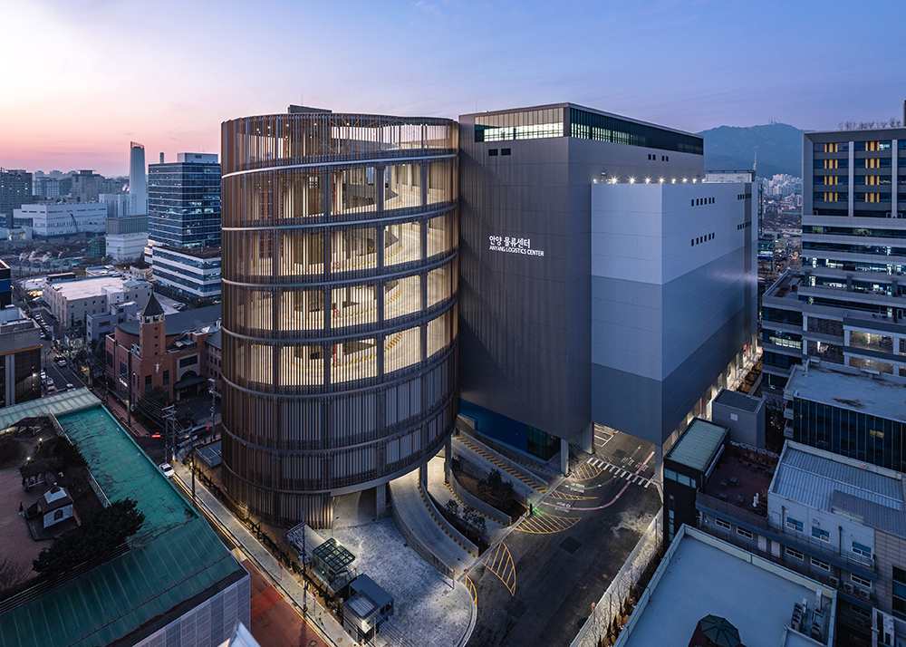 With the expansion of online commerce, the importance of logistics centers has grown because of the surge in demand. Traditional logistics centers have been pushed to the outskirts of metropolitan areas, which leads to issues of increased traffic, higher carbon dioxide emissions, and delayed delivery times. The Anyang Logistics Center was built to address these problems by maximizing logistics efficiency in a site located within a densely populated metropolitan area.