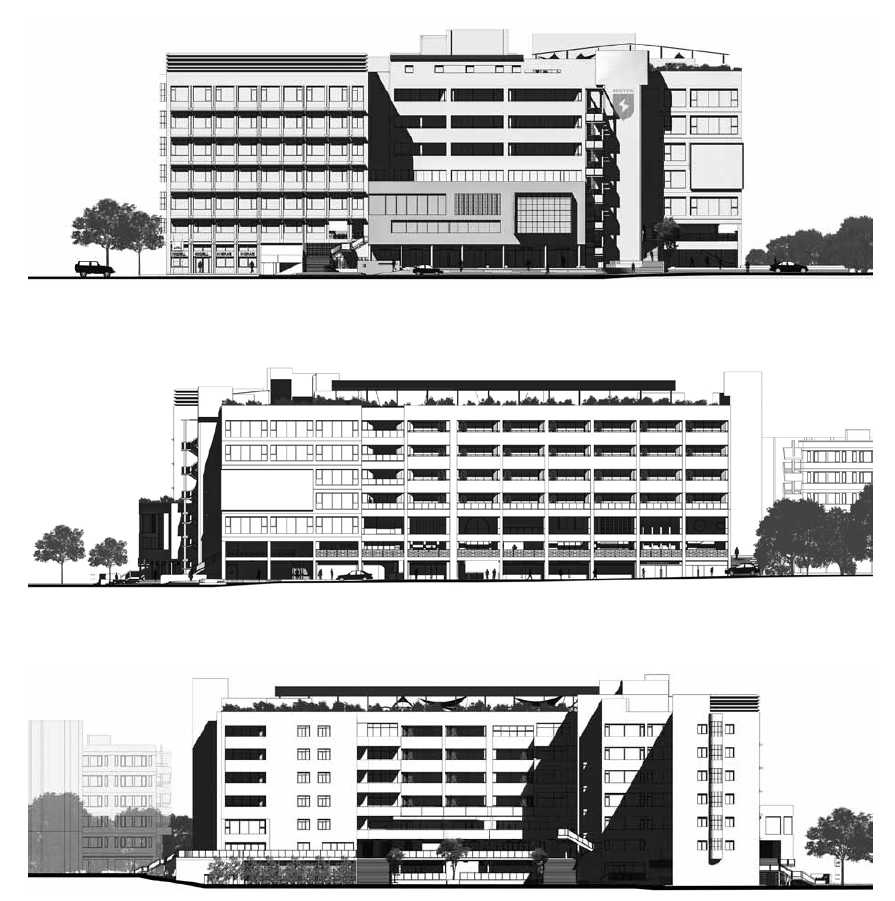 1층은 높은 층고로 공간감을 높이고 독특한 바람장을 형성한다. 2층과 3층은 개방하여 복층 타운 형태를 선택하여 입주 상가의 자유롭고 다양한 사업 형태를 수용하고, 교차로와 같은 거리 풍경을 제공한다. 1층의 공원은 테라스와 보행 계단, 식생을 보존하는 등의 전략을 통해 미세 기후를 형성하고 냉방시설의 의존도를 낮추었다.
