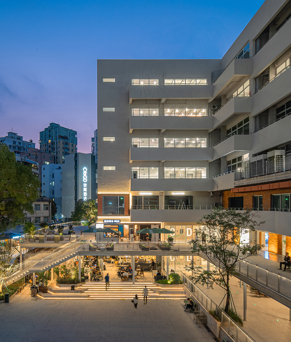 건축가는 건축과 인테리어의 통합 설계를 통해 공장 건물을 전체적으로 변형한 프로젝트를 선보였다. 외관은 기존의 공장 모습을 그대로 간직하면서도, 내부는 선전의 트렌드에 맞추어 완전히 달라졌다. 개방적인 입체적인 공공 공간에는 다수의 공공좌석과 플랫폼, 계단, 공원과 같은 사회적인 장소를 구성하여 평일에는 인근 지역 주민들이, 주말에는 젊은 힙스터들이 방문하는 장소가 되었다. 아방가르드한 미학과 문화창의성의 공감대를 형성하는 공용 공간을 조성함으로써, 상업적 가치를 십분 활용하면서도 건물과 도시의 경계를 완화하여 도시 속 ‘커뮤니티 파크’로서의 역할을 하는 예술생태단지가 되었다.