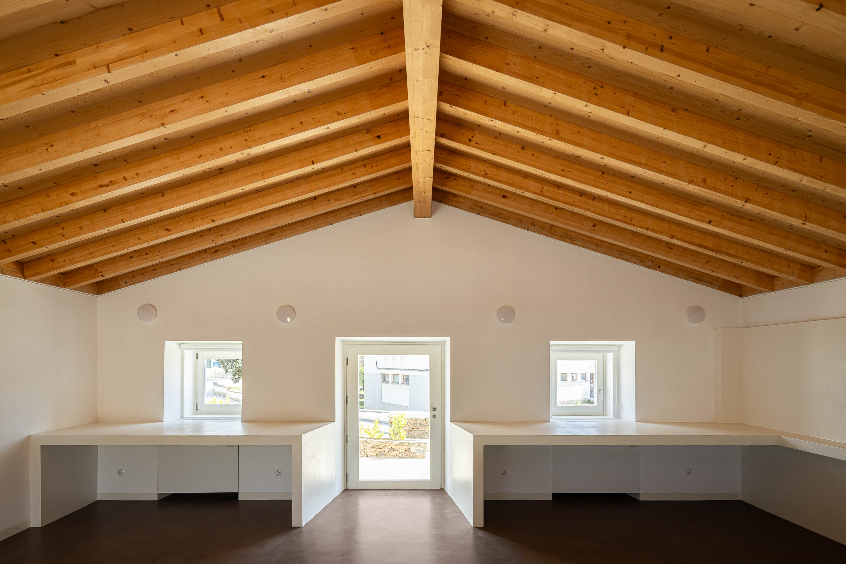 To enhance the building's relationship with its surroundings, the landscape next to the main entrance was redesigned, and two ramps were integrated to create a smoother connection between the building, the town, and Quinta da Estrela.