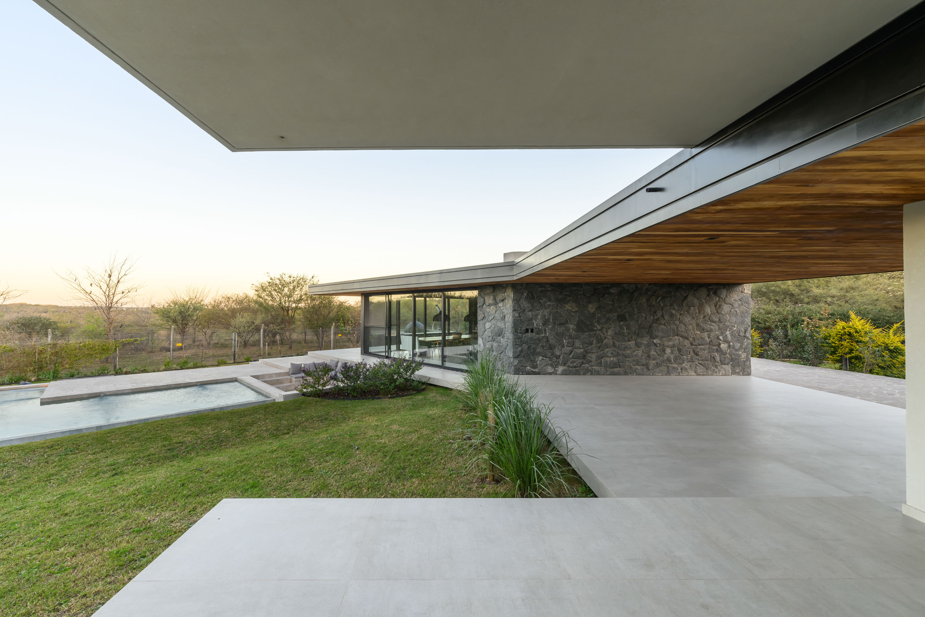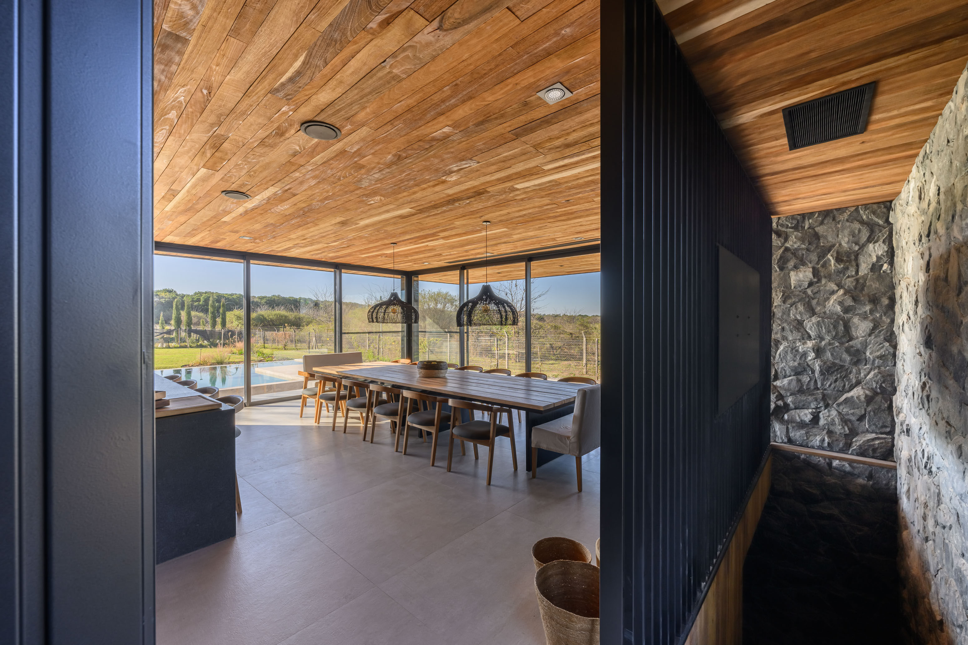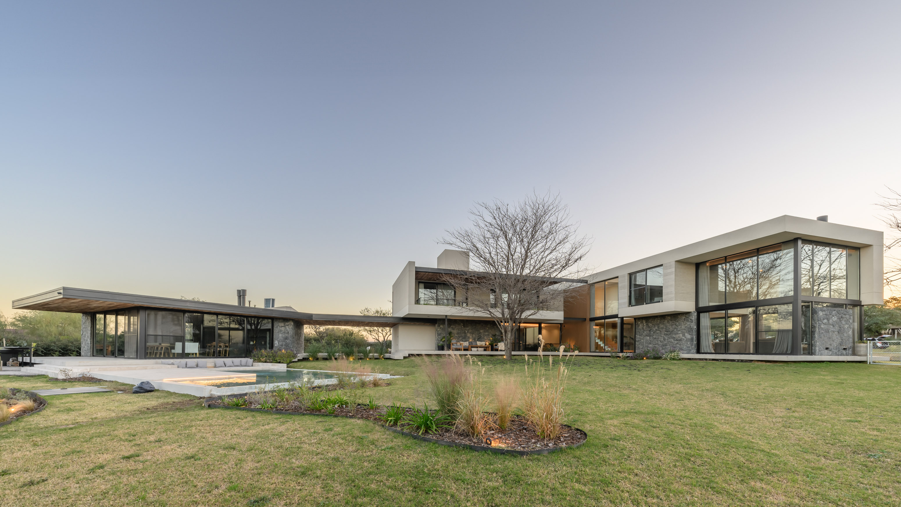 Located in La Serena private neighborhood, just 20 minutes from Córdoba Capital, this residence has been designed for a family consisting of a couple and their two teenage children, with an active social life and a deep appreciation for comfort and style. The 2075 m² lot, situated on the edge of the neighborhood and adjacent to a green space, provides a unique setting that has been utilized to maximize privacy and connection with nature.
