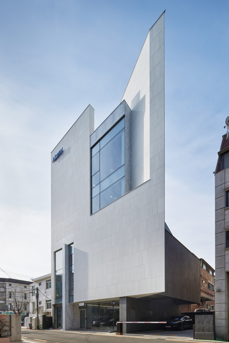 사옥은 한 기업의 가치관과 인상을 표현하는 상품으로서의 가치를 가져야 한다. 일련의 적층된 프로그램은 각 공간이 가진 개성과 특징을 입면으로 고스란히 드러내는 방식으로 치환되어 거대한 벽체를 이룬다. 데페이즈망 기법을 차용한 화이트 클리프 1층 라운지의 투명한 유리창 위로 높게 이어지며 좁은 도로와 복잡한 골목 풍경에 극명하게 대비된 신비로운 오브제가 된다. 일조사선제한의 경계를 아슬아슬하게 넘나들며 뾰족하게 깎인 전면부 매스는 도로에 대면하는 면적을 극단적으로 늘리며 낯선 감각을 더욱 극대화하고 역에서부터 이 사옥을 걸어오는 방문자에게 생경한 첫인상을 선사한다.