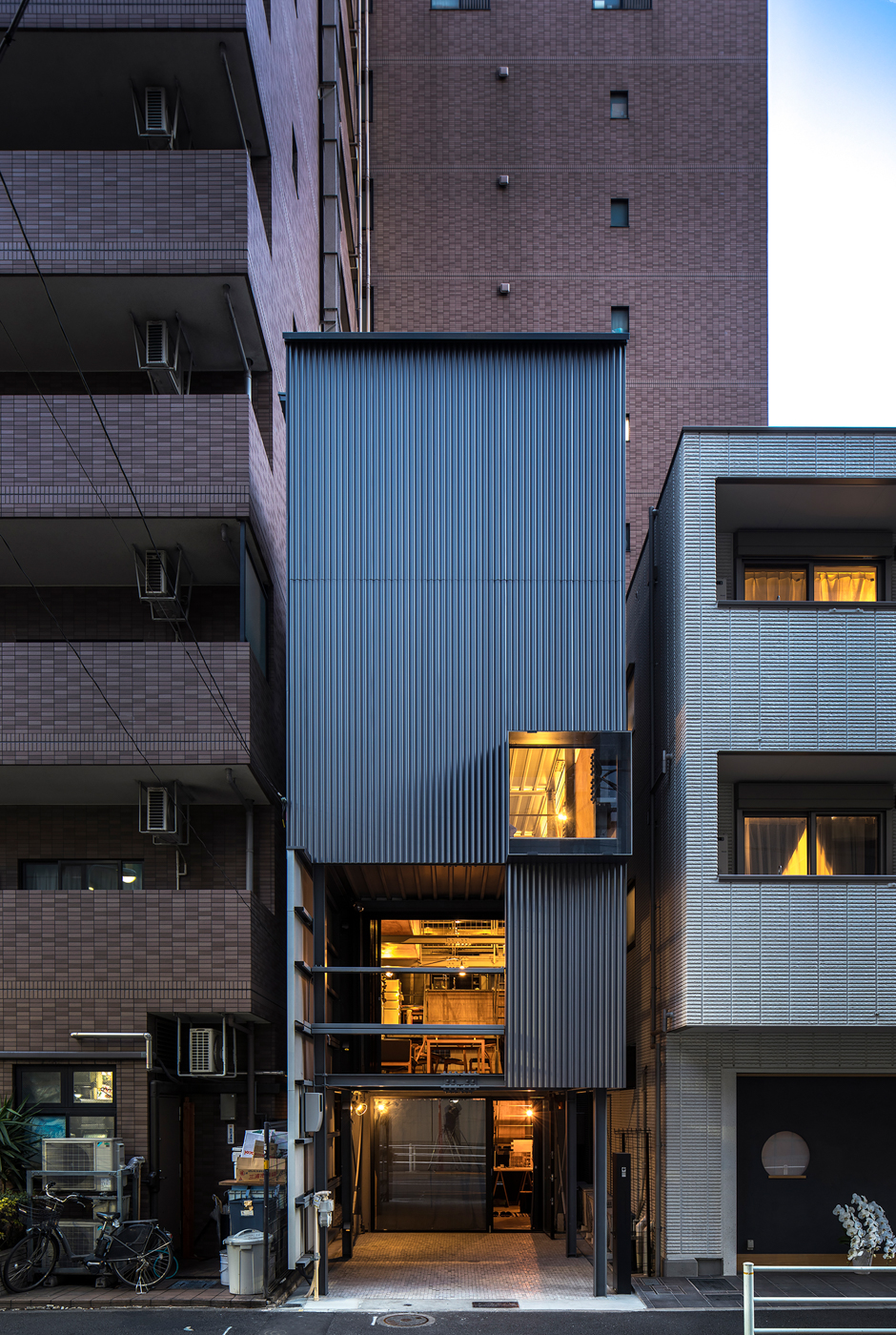 House "irfn" was built for a couple and their two children on a small plot of land in the densely populated heart of Tokyo. This house was developed as a low-cost experimental project, designed to reflect the diversity of its residents and the living areas, while accommodating various changes within an urban environment. As a result, it features a minimalist structure with basic framing, exterior walls, and windows, giving it an improvised and temporary appearance. The frame, finishing materials, fixtures, and furniture of the building are all designed to be actively adjustable to the residents' lifestyle. In this context, although House "irfn" is an unfinished home with endless potential for transformation, it offers an opportunity to explore the meaning of harmony with the modern city, evolving along with its surroundings.