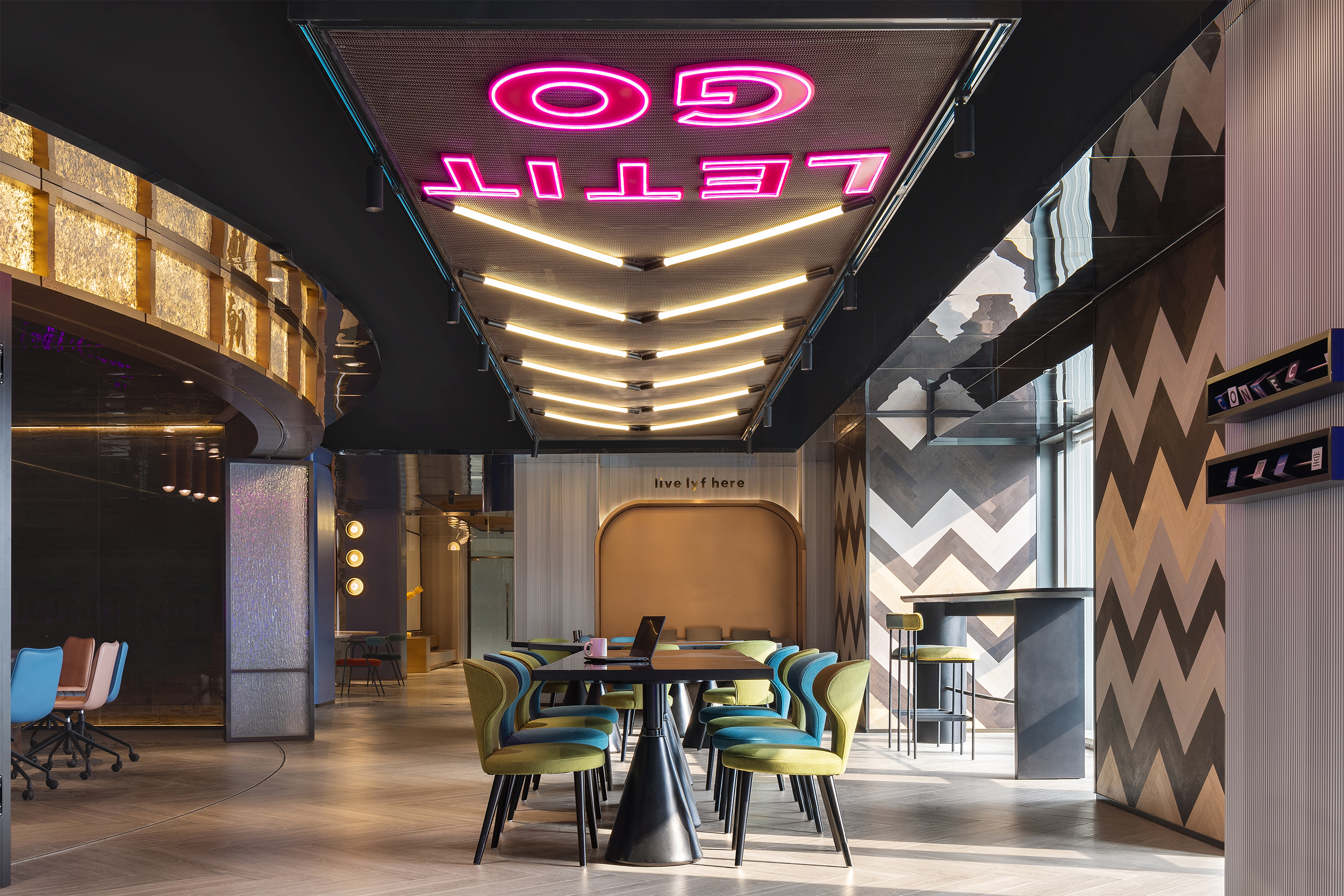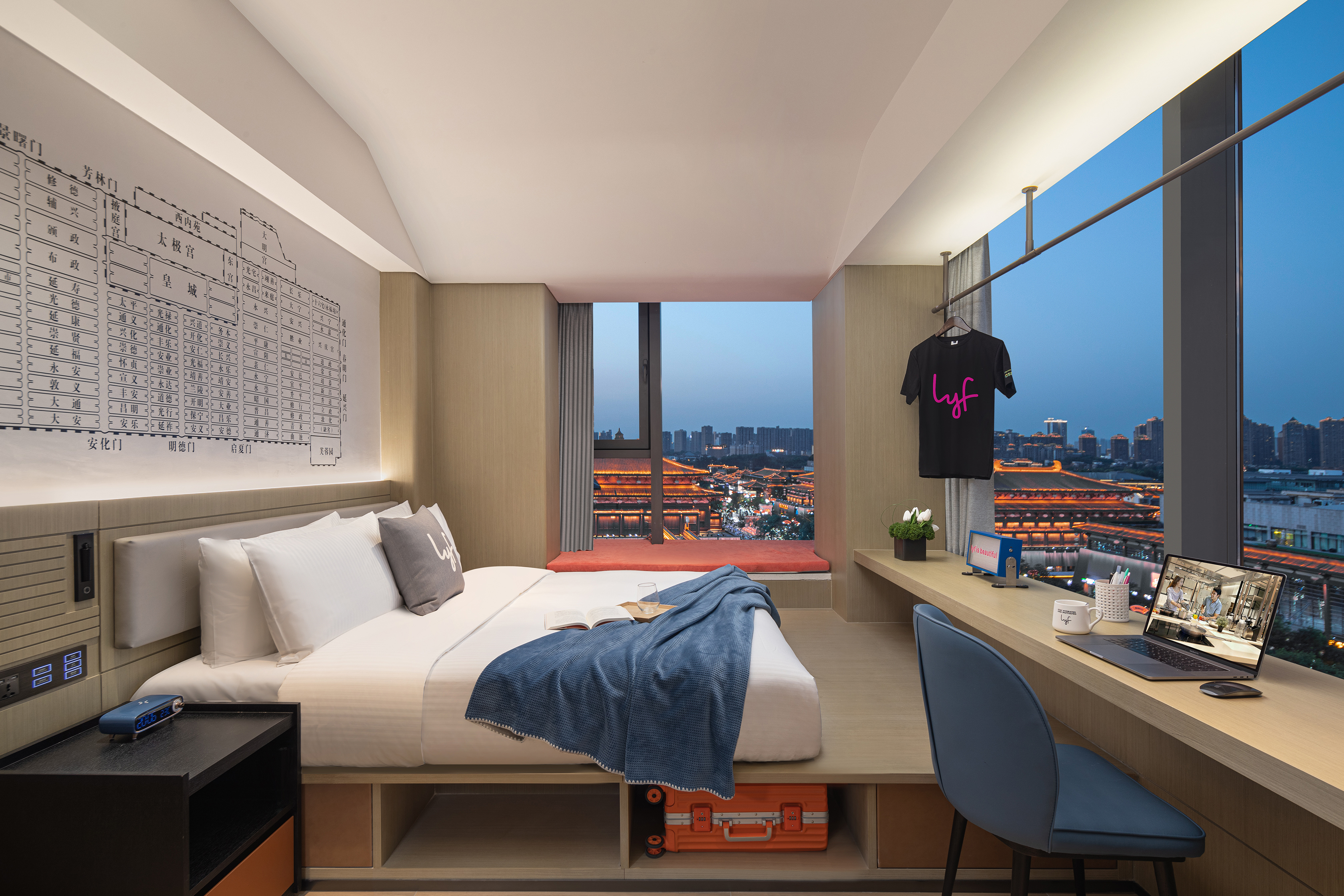 Xi'an Leaf Hotel is a project that proposes a unique space where millennial culture harmonizes with the city's rich heritage, catering to the increasing demand for experiential consumption among the new generation of young customers. The artistic and trendy design elements explore traditional culture within a contemporary context and incorporate various spatial functions that reflect local storytelling, while connecting with the urban landscape. Art transcends being merely an accessory in the space; it becomes an essential element that coexists within the environment. As a result, the designer has dismantled the boundaries of traditional hotels and expanded the design. By presenting a modern interpretation of Chinese cultural heritage, the hotel showcases a surreal artistic allure, establishing a new standard for future hotel space experiences. Interactive connections with subtle elements were considered, and spaces for visitors to engage in community building, cultural and artistic awareness, and emotional connections were proposed. Areas such as a shared kitchen, restaurant, combined working space, and laundry serve functional roles within the hotel while also acting as catalysts for social interaction.