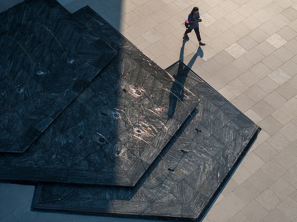 The sunken plaza on the side of northeast plaza features layered terraces with obliquely-sliced seating steps at 30cm in thickness, ensuring structural stability, comfort for seating, and variations in the aesthetics of the space. The forms abstractly depict the momentum of phoenix, adding diversification of visual interests for the quality atmosphere of the sunken plaza.