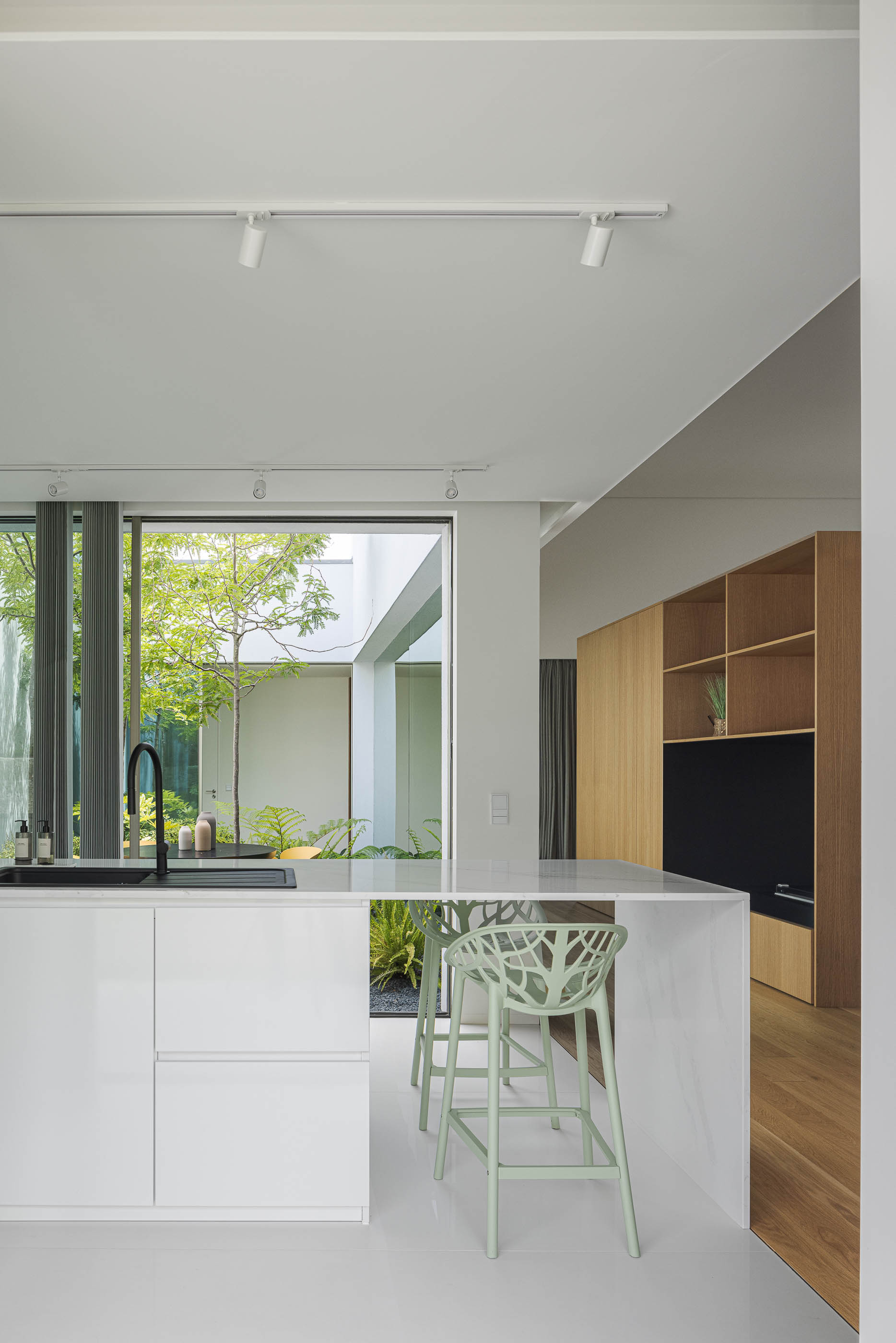 The contact with the outside was a prioritized element in the development of the project, taking advantage of the green landscape and outdoor space carefully designed to provide a comfortable and efficient living environment, promoting well-being and a strong connection with nature.