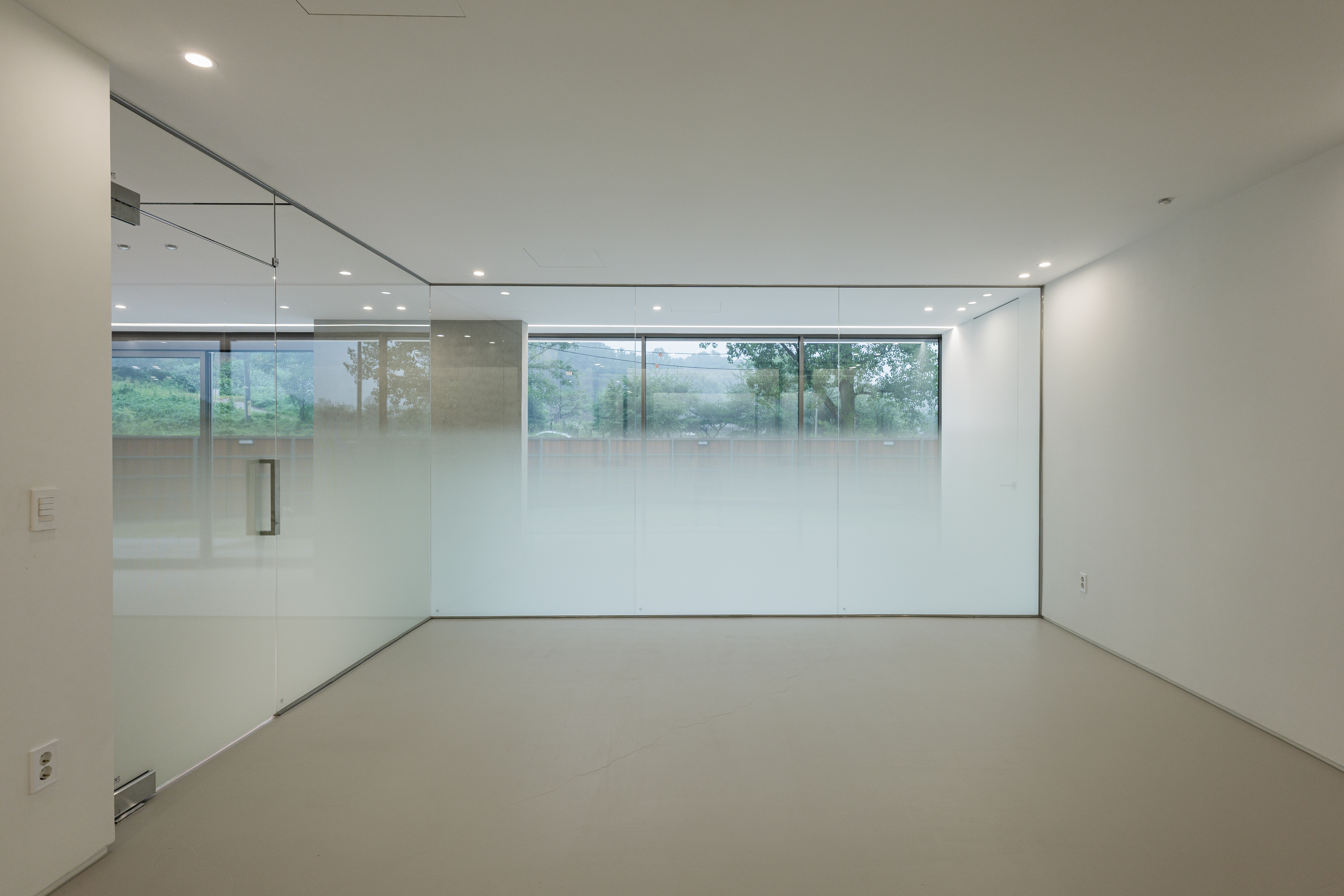은빛 숲은 반려견을 위한 공간으로 기존 건물을 증축한 프로젝트다. 양평군 지평면 시내에서 멀지 않은 마을길을 따라 가면 숲과 맞닿은 땅이 나타난다. 이곳에 단정한 은빛 건축물이 지어졌다. 낮은 석축과 사람의 키만한 나무 담장이 주변의 짙은 신록과 어우러지면서 주변 풍경으로 건축물이 스며든다. 기존 건물은 다섯 개의 공간으로 구분되어 각 공간을 외부로만 이동해야 하는 불편한 구조였고, 부실한 시공으로 2층 지붕 방수가 제대로 되지 않아 1층 실내로 고인 물이 떨어지는 상황이었다. 기존 공간에서 부족한 부분을 최대한 빨리 보완하고 공사기간을 단축할 수 있도록 철골조로 시공되었다.