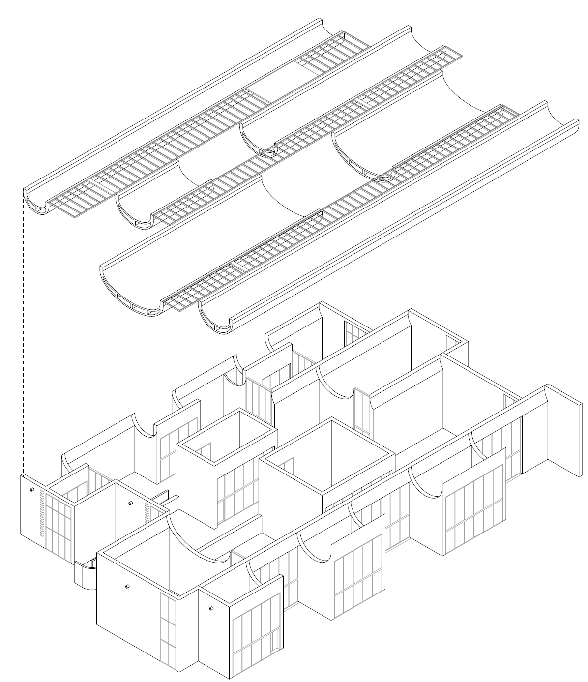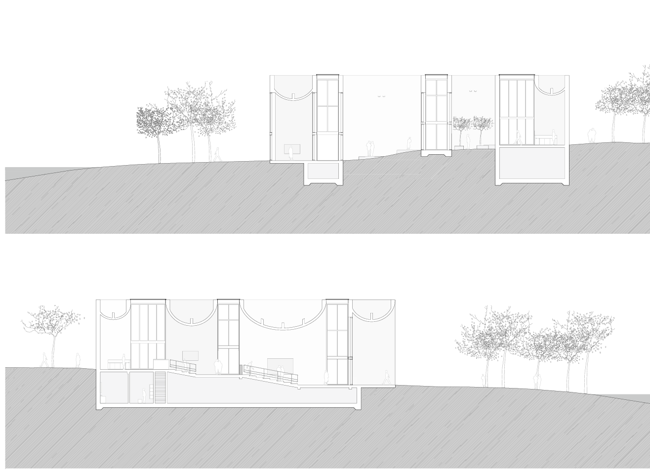 건축가는 자재의 운송 횟수, 건설 폐기물 등을 줄여 지속 가능한 건축 환경을 제안했다. 현장 주조 콘크리트만을 사용하는 대신, 공간적인 품질을 높이는데 초점을 맞췄다. 건축물의 구조는 최대 17m의 곡선 콘크리트 슬래브와 벽으로 이루어져 있다. 현장에서 사용된 거푸집은 비계와 나무 판자로 만들어졌으며, 거푸집의 거친 질감은 콘크리트 건축물의 정면, 벽, 천장에 리듬감과 독특한 질감을 만들어 냈다.