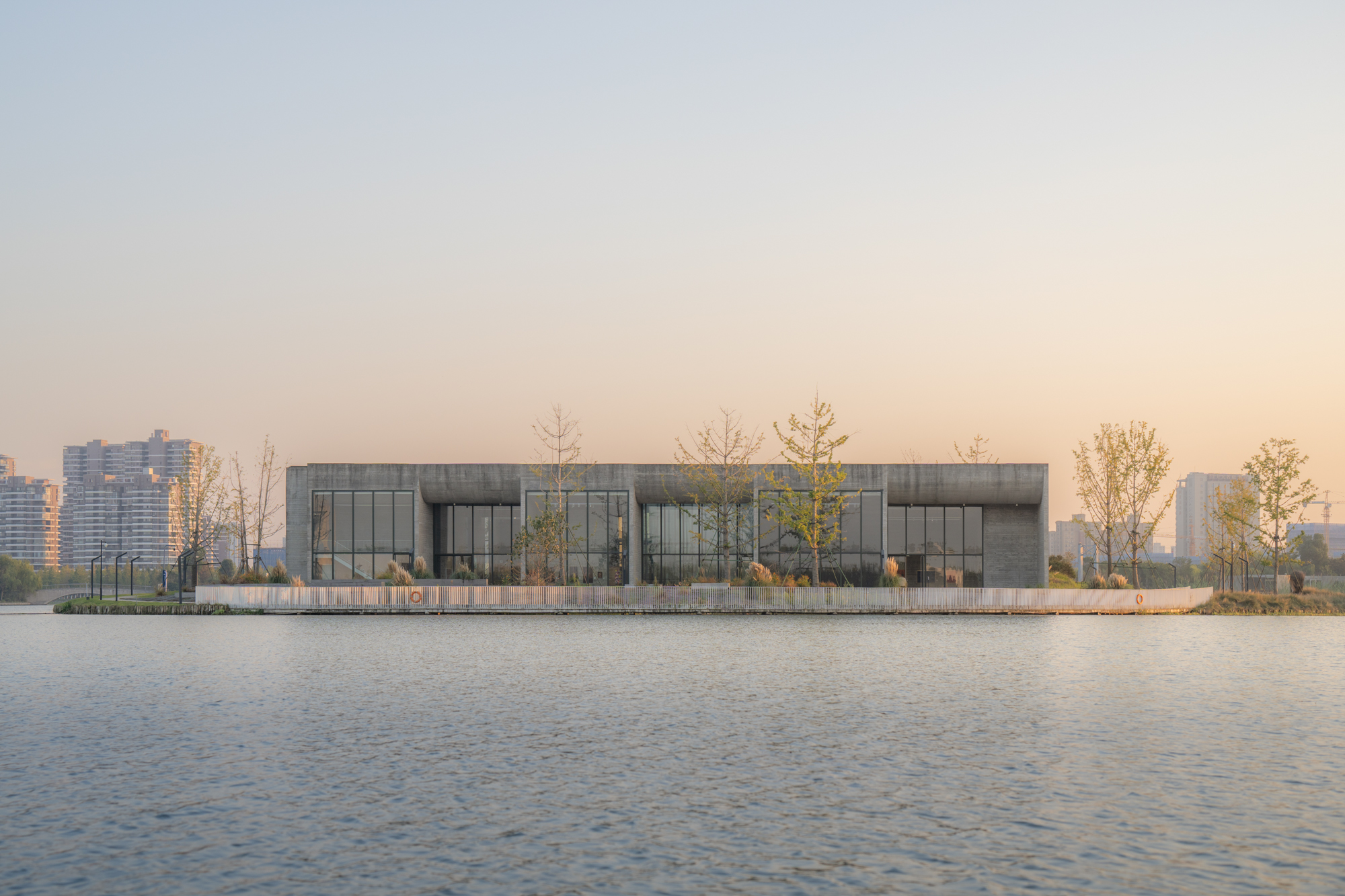 긴코 갤러리는 자싱시의 은행나무로 덮인 섬에 새롭게 지은 미술관이다. 미술관에서의 경험은 섬의 주변 풍경과 상호작용이 중요했다. 건축가는 대지 주변의 물, 풍경과 연결하여 문화와 예술의 관계를 더욱 심화시키고, 방문객이 건물과 조경, 내부와 외부 사이의 부드러운 전환을 경험하도록 의도했다. 전시홀은 남측에서 북측으로 갈수록 그 규모와 높이가 점차 증가한다. 곡선 지붕은 내부로 유입되는 햇빛을 일부 걸러낸다. 간접 자연광을 만들기 위해 남측 정면을 일부 폐쇄하고 북측을 개방했다. 섬의 둘레를 따라 마련된 곡선 경로는 호수를 향해 열려있고 섬을 탐험하는 경험과 야외 전시를 지원한다.