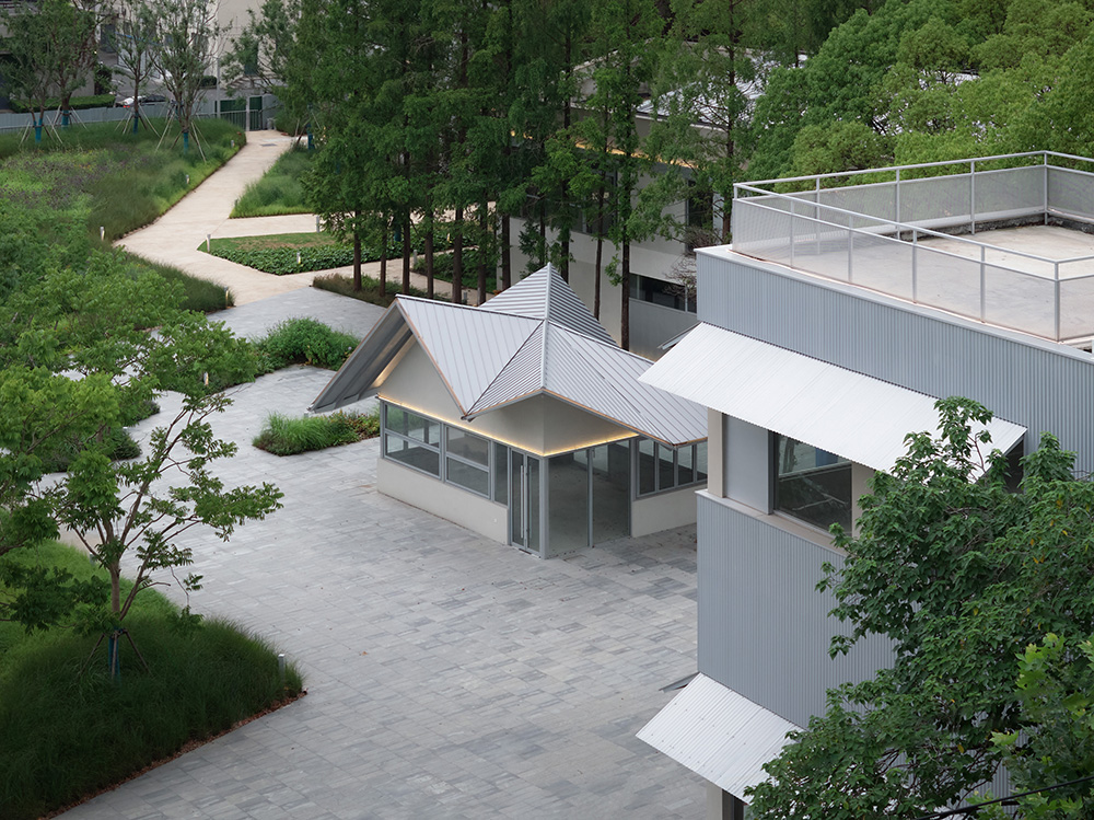 Following the urban planning guideline, the renovation retained the original layout and greenery of the campus, transforming it into a low-density high-green-ratio office and commercial plot, which is scarce in downtown Shanghai.