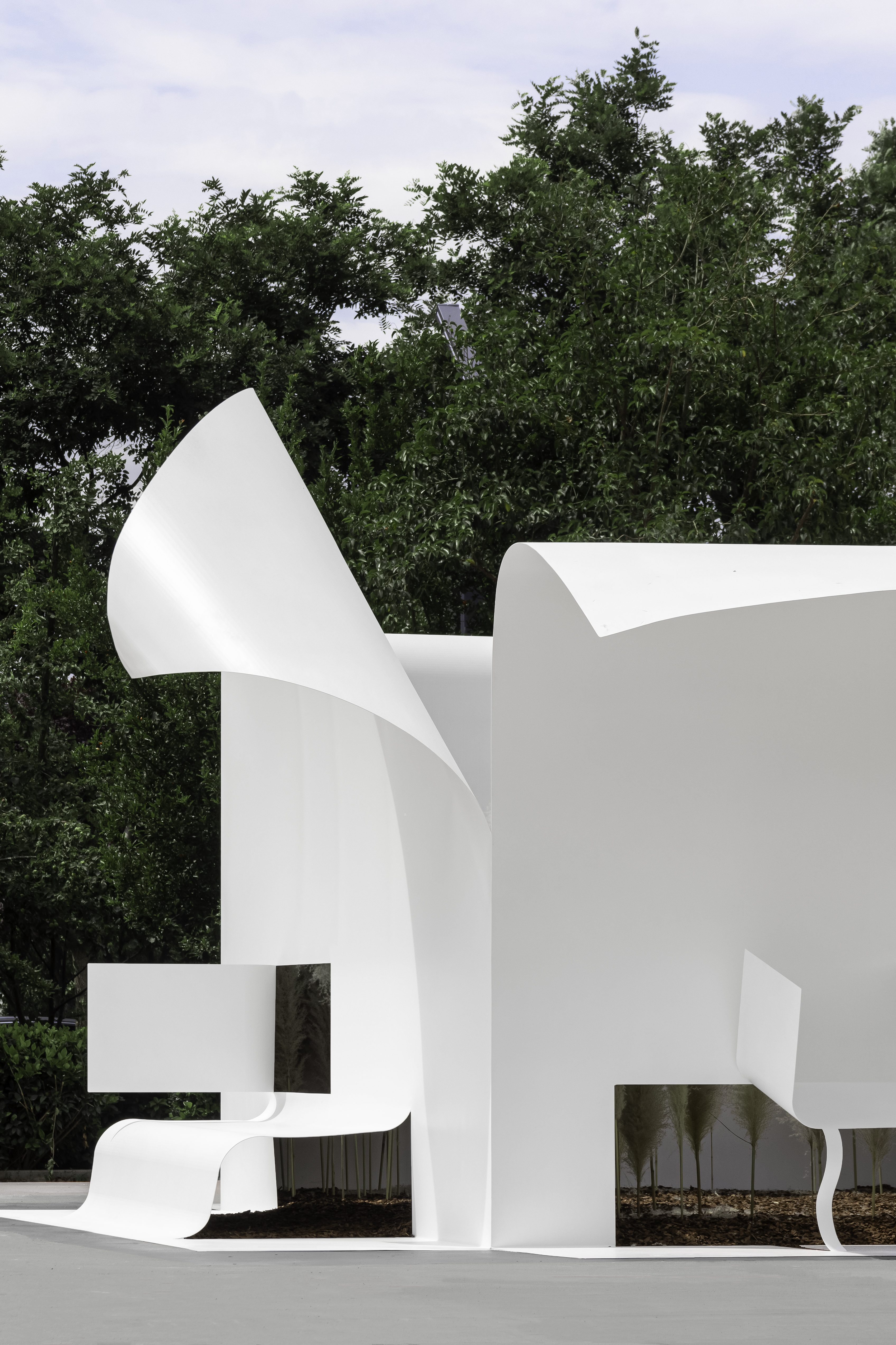 The construction process is combined with the prefabrication of the factory and on - site. The main body of the 2mm thick steel plate is selected. The thin steel plate blurred the structure of the device itself, and hidden all nodes and structures to achieve a thin and thin effect of paper.