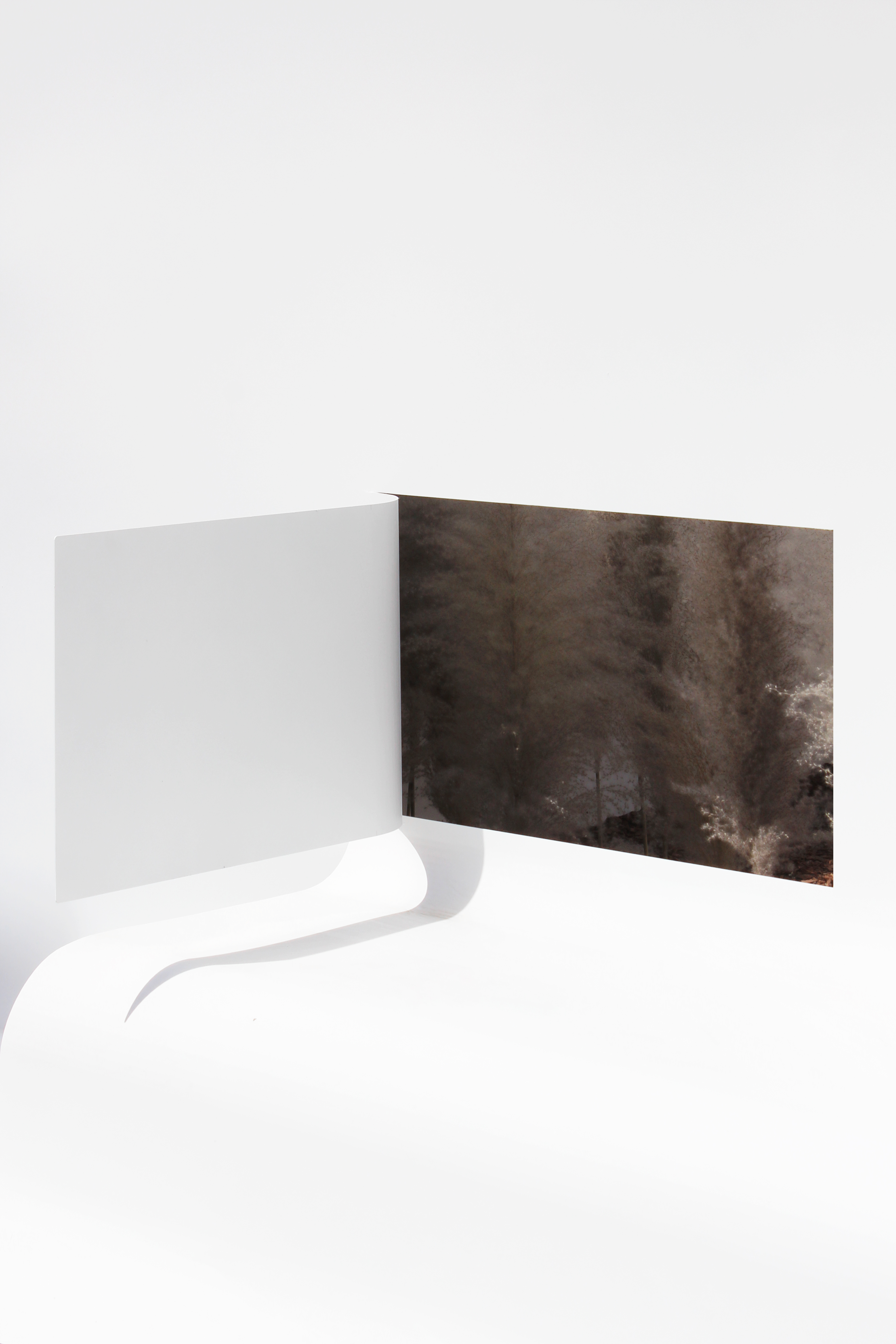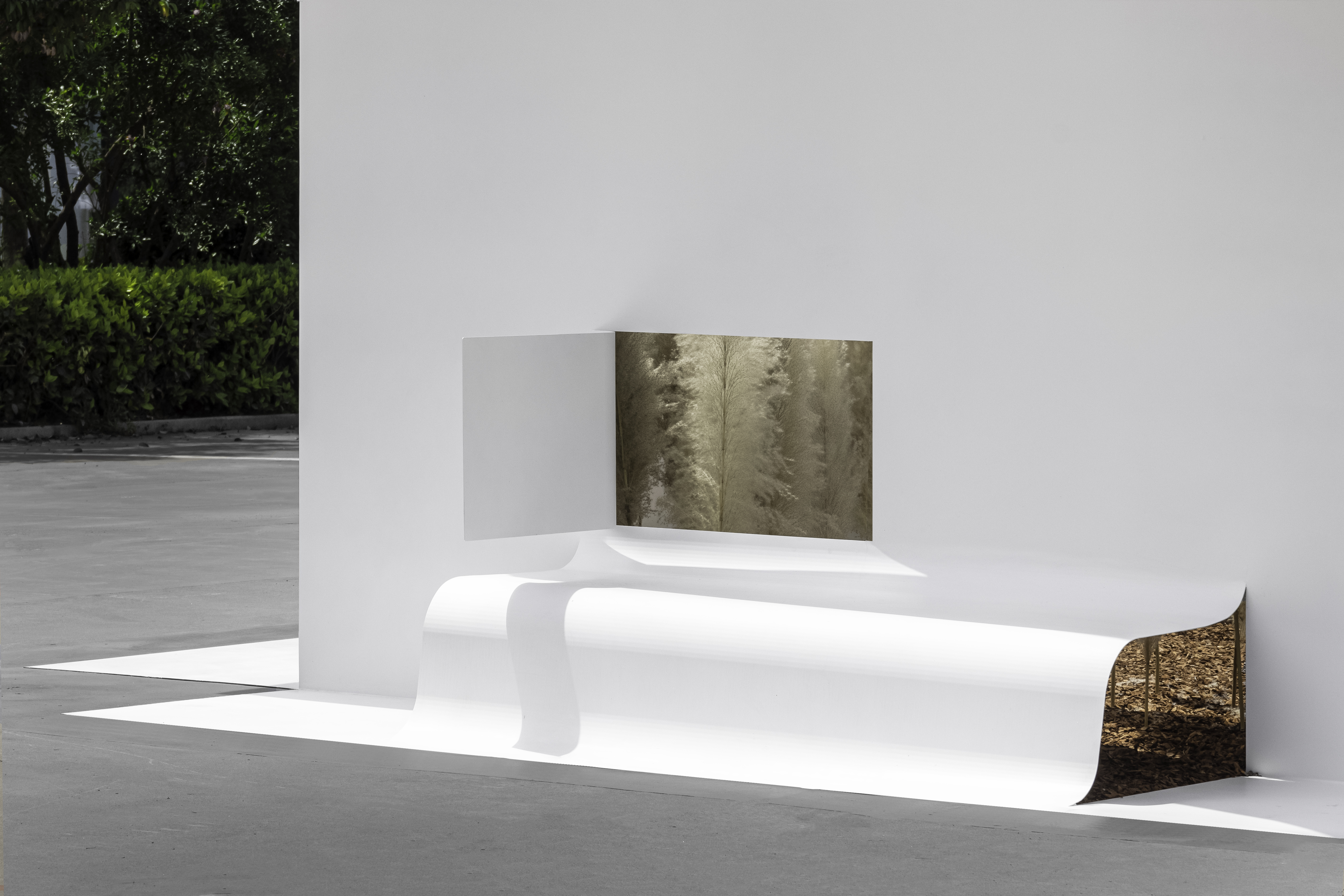Cutting and folding form multiple caves of different sizes, heights and forms, showing multiple perspectives of the interior scene, from bottom to top, the earth, reeds, trees, sky, form a dream -like frame.
