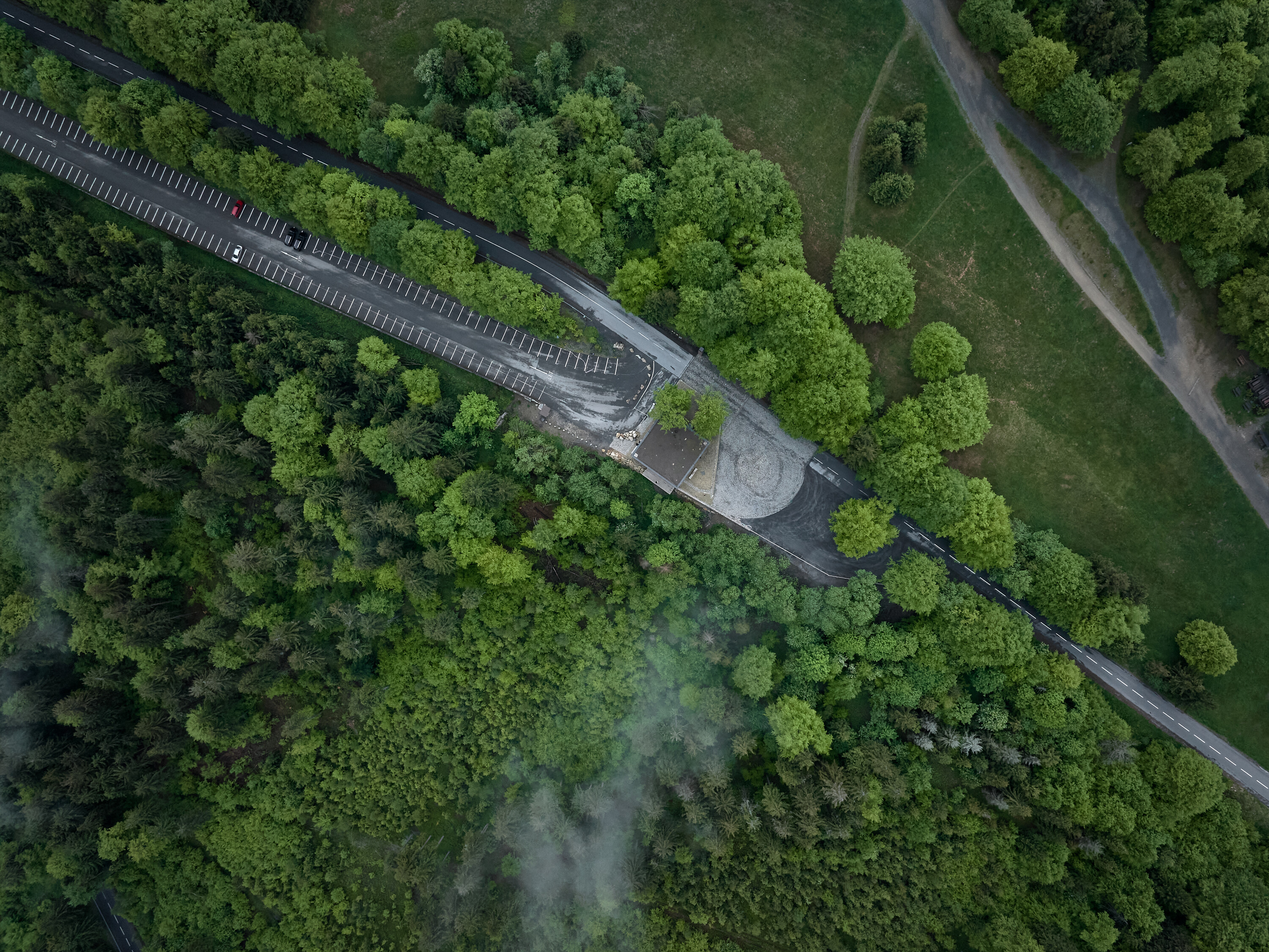 The project focuses on the entry point from Prostřední Bečva, where a large parking lot is situated along the access road. The parking lot includes an area on an embankment created during road construction. Previously, a small service building for parking lot staff stood here. Together with the cable car building on the northern side, this site is a significant entry point for Pustevny visitors.