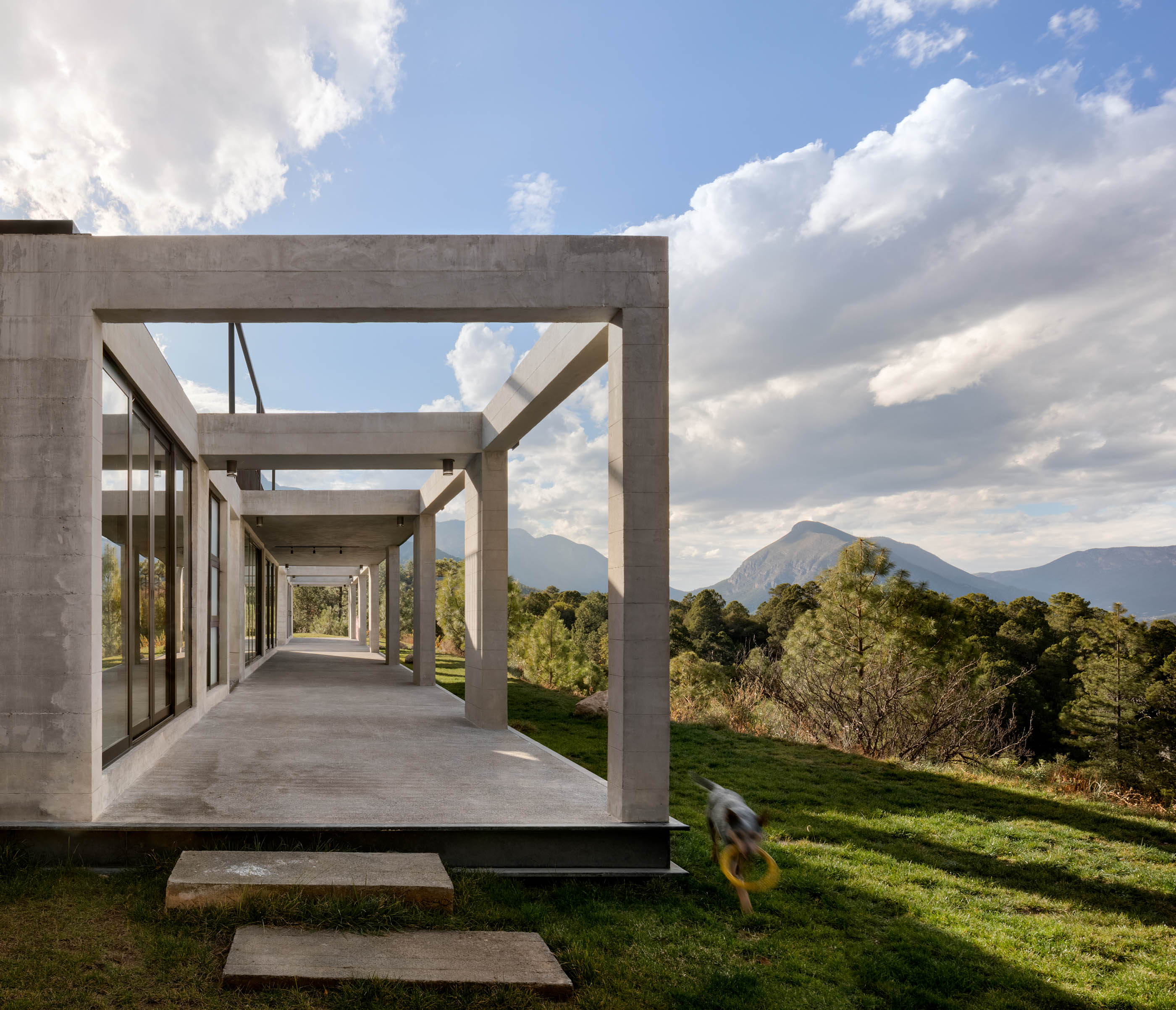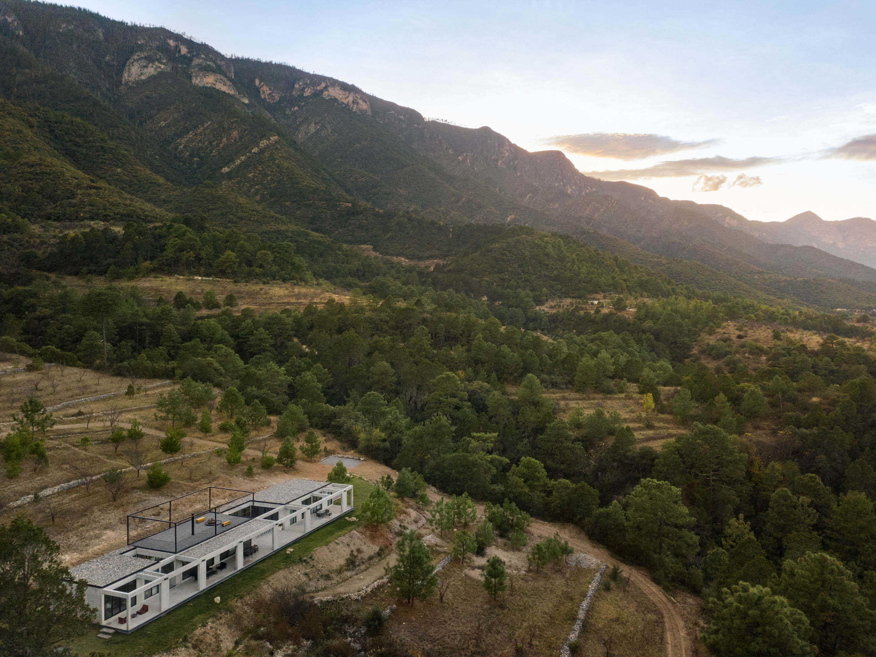 This project is a weekend house in the mountains of the Sierra de Arteaga, in the state of Coahuila in northern Mexico. The house is laid out on the slope of an old orchard in mountainous surroundings, with the intention of having minimal impact on the site and natural vegetation. This solution also ensured the best views, as the orchard vegetation is much more open and lower than the surrounding forest.