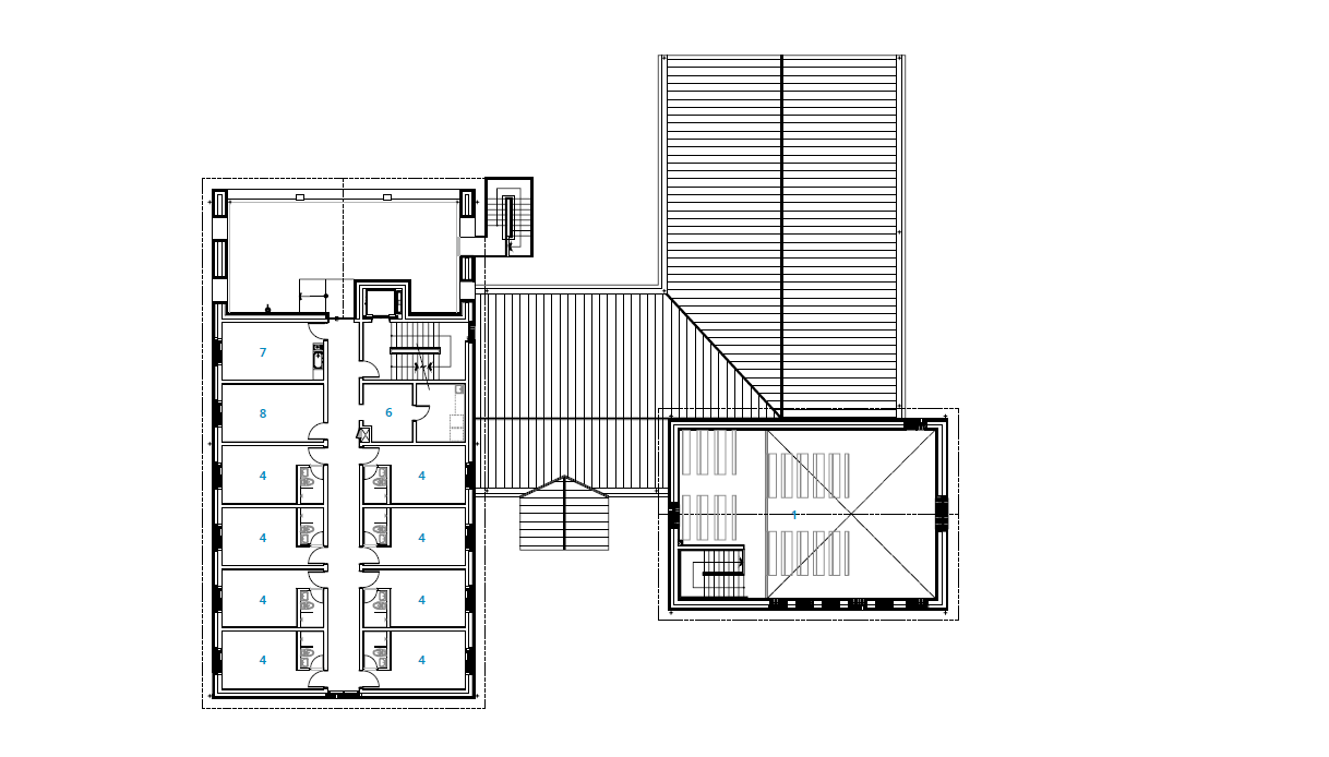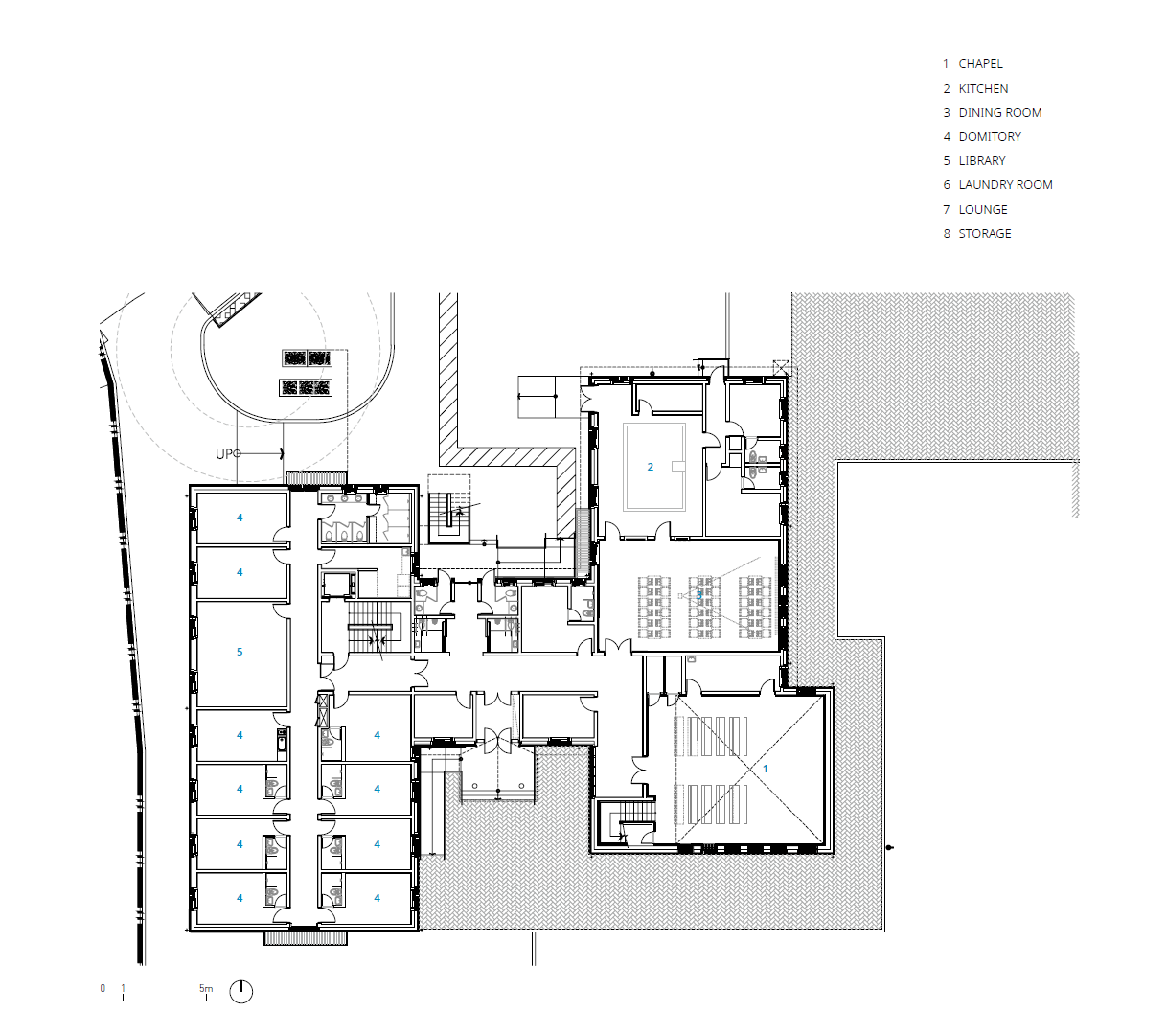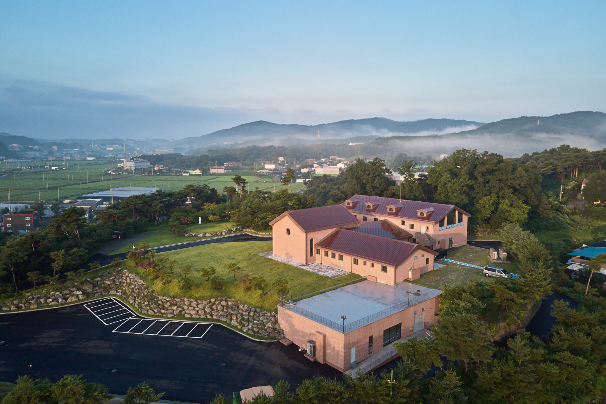건축가는 기존에 위치한 찜질방 구조물을 철거하면서 지하의 기계실과 일부 시설은 재활용하여 수도원의 공간으로 사용할 수 있도록 계획했다. 프로그램은 예배 공간인 성당, 학습 공간인 도서실, 식사와 교류 공간인 식당, 묵상과 거주 공간인 기숙사로 이루어져 있다. 대지의 여건을 고려하면서 각 프로그램 배치를 계획했는데, 진입로에서 마주보는 자리에 성당을 배치하고 식당은 서비스 차량이 접근 가능하도록 북측에 배치했다. 기숙사는 동향과 서향의 2층 복도를 따라 있으며, 성당의 식당과 연결된 통로 가까이 수도원장실과 관리실이 있다. 학습 공간인 도서실은 박공 지붕의 하부 공간을 활용했다.