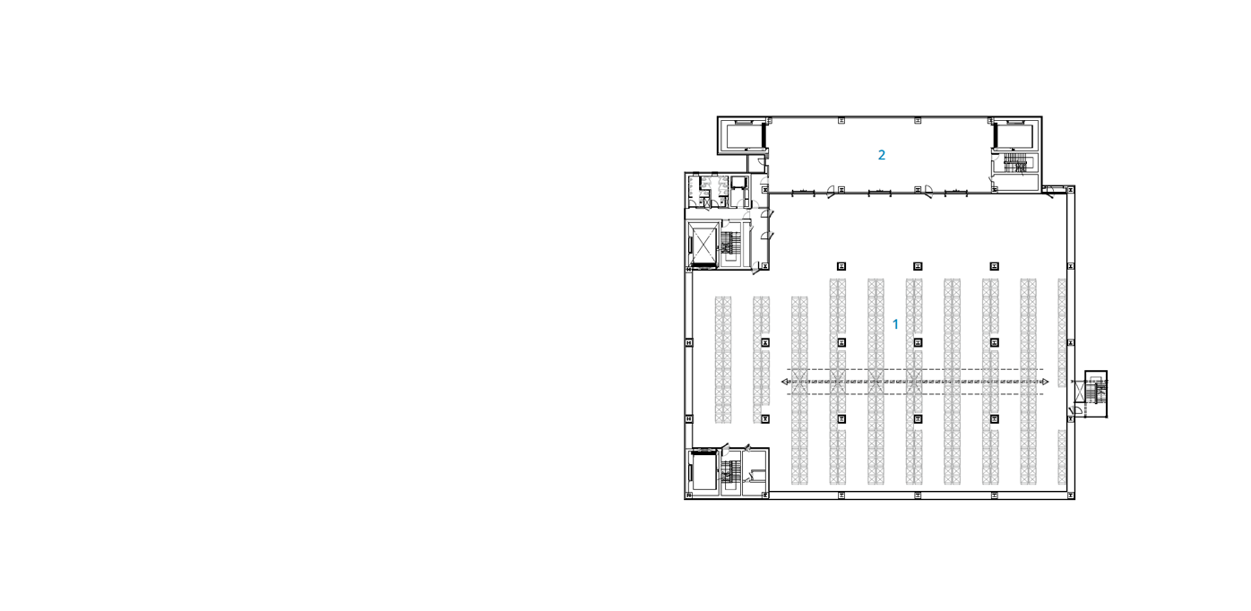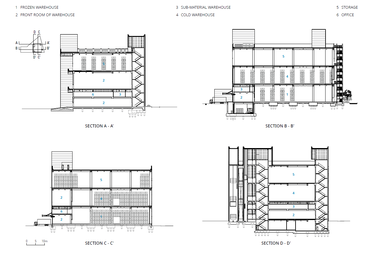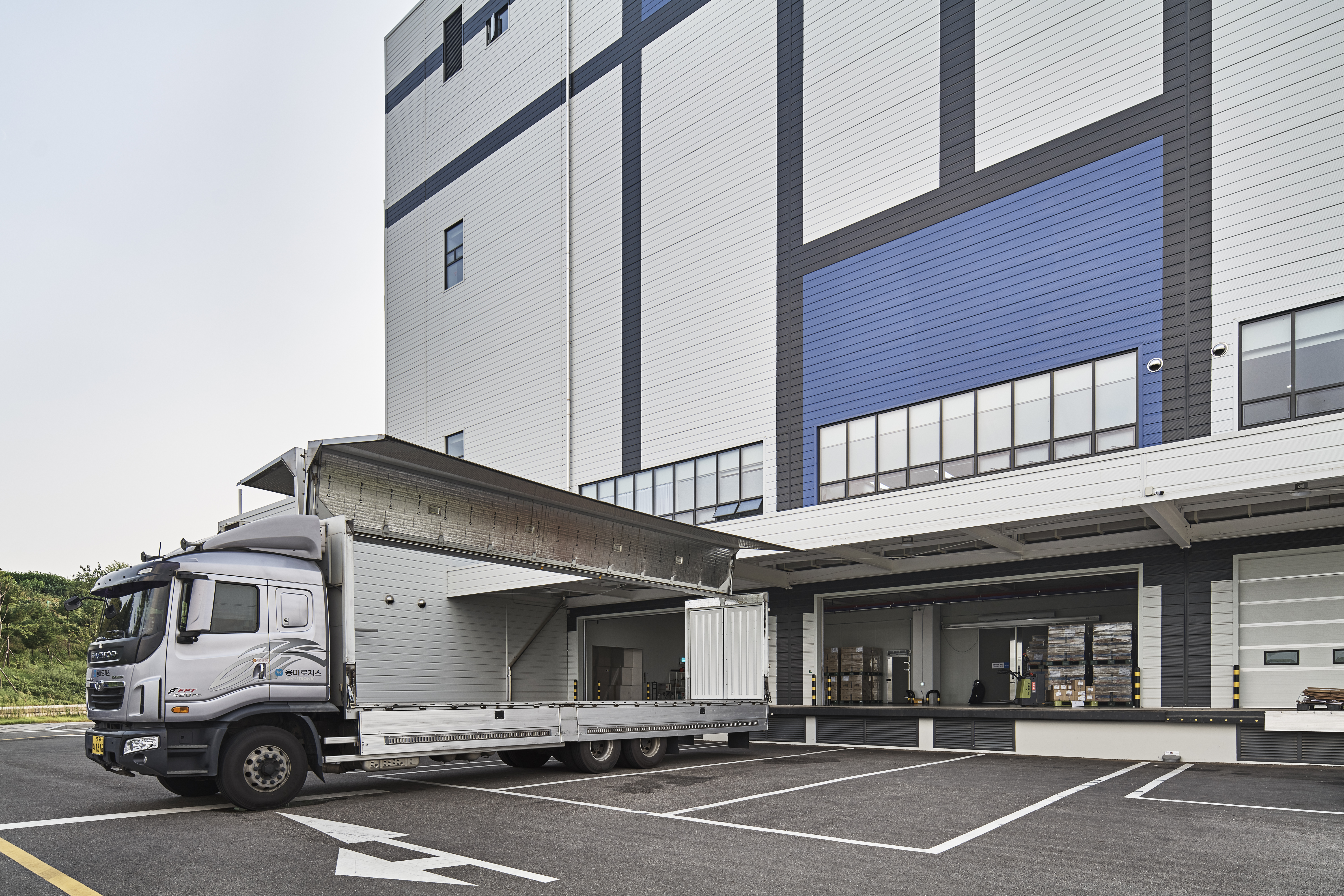 일반적인 물류창고는 화물 차량의 직접 접근을 고려한 로딩 데크를 각층에 설치한다. 블루엠텍 평택물류센터 드림 1호는 의약품 전문 물류창고로, 반입 시에는 대형 물품, 반출 시에는 소형 물품이 된다는 특징을 지닌다. 건축가는 이러한 특징을 고려하여 반입과 반출 로딩 데크와 화물용 대형 엘리베이터를 각각 분리하여 원활한 화물 반출입이 가능하게 했다. 지상 1층과 2층에는 중층을 설치해 업무시설로 활용하였는데, 지상 4층 규모의 정육면체 형태의 공간 안에 지상 3층 규모의 층을 형성하며 대공간을 형성하였다.