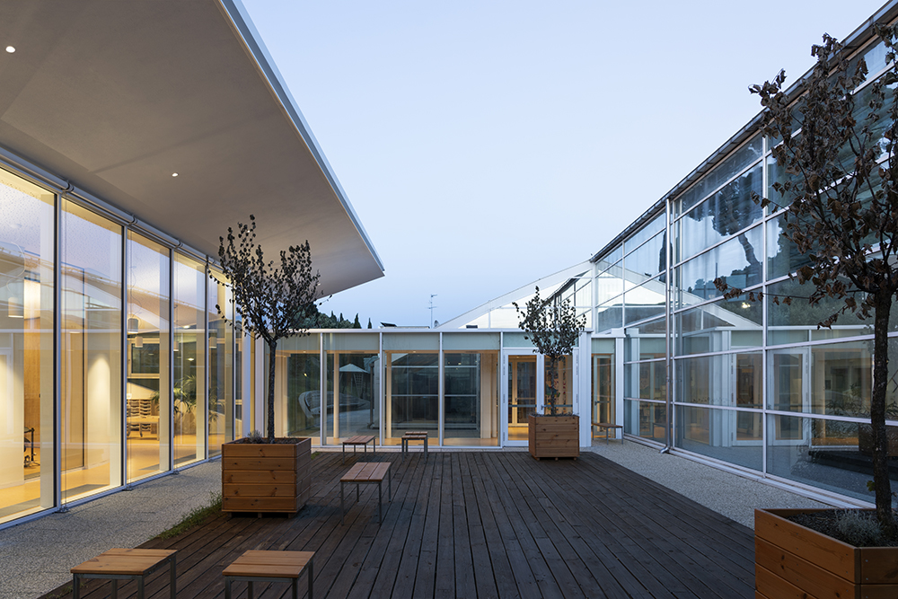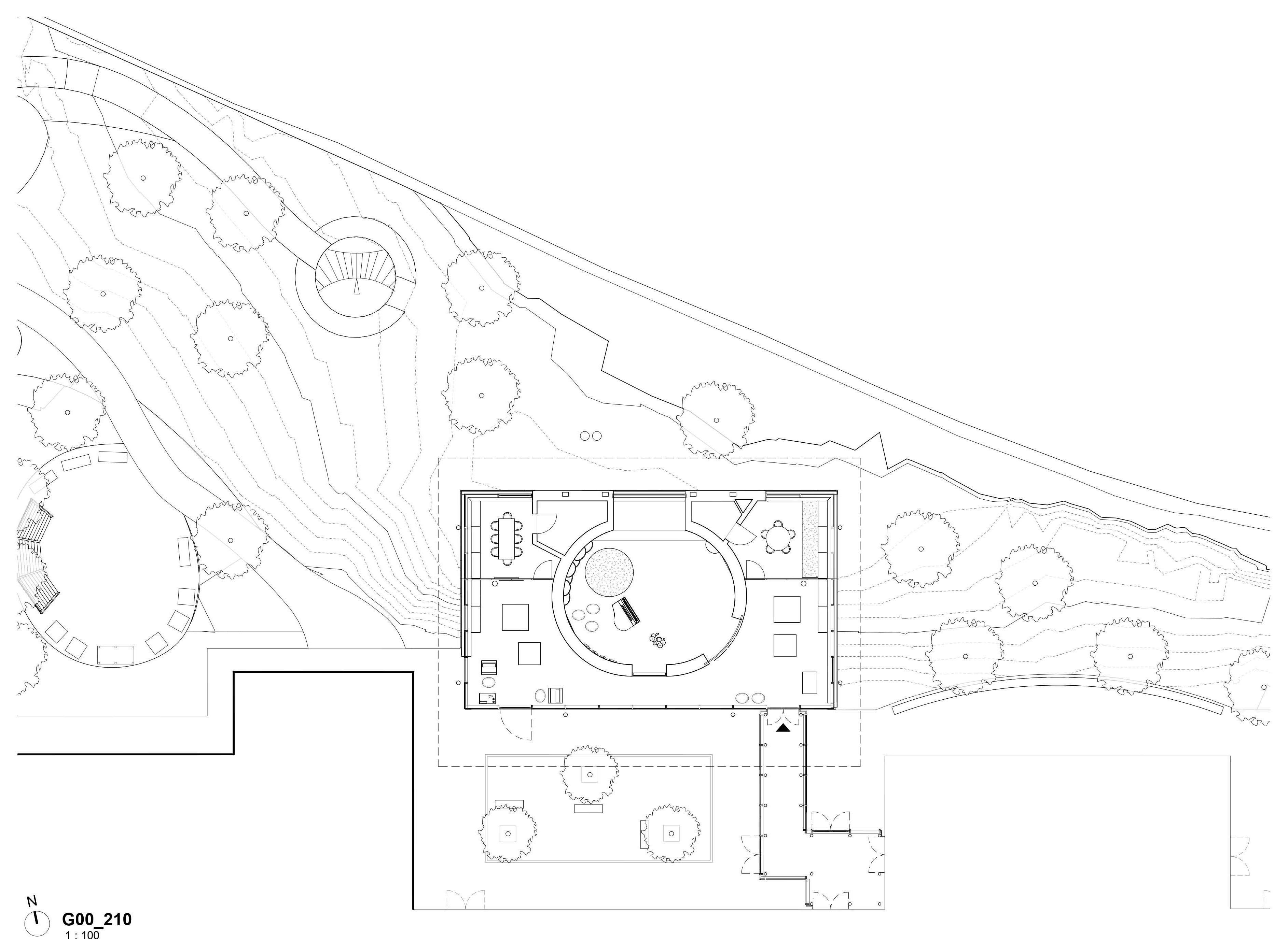 The iconic feature is a lightweight, upwardly curving roof that harmonizes with the hospital’s latest expansion. Beneath this roof, all facilities are gathered in a complex that provide a 360° view of the surrounding sensory gardens, which have been redesigned for various activities, including a school garden.