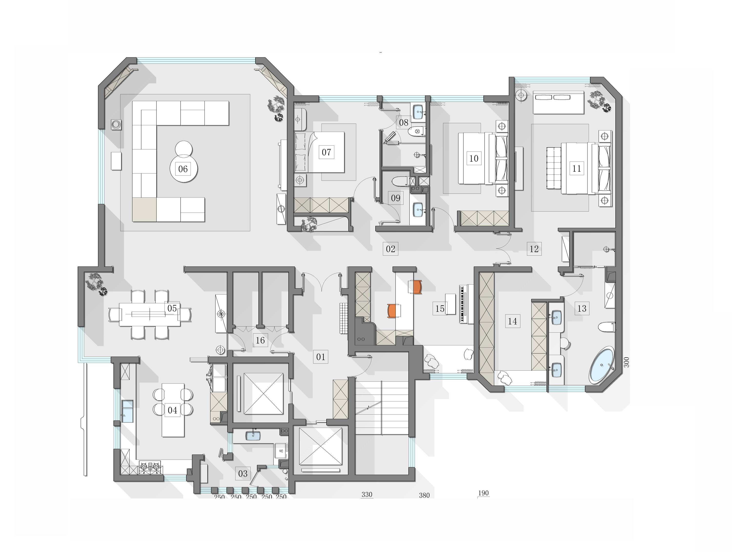 Compared to the formal French style of Lisa’s previous home, designer Fu Xia hoped to infuse more relaxation into the space this time, creating a sense of effortless elegance within the refined urban lifestyle. Compared to traditional luxury apartments, this renovation breaks away from the fixed layout of a standard flat by reorganizing the space. In the original structure, a long corridor separated the living area from the functional areas, making the space narrow and lacking in natural light. Fu Xia merged two smaller rooms to create a piano room for the daughter. This open space meets the emotional needs of the family of three to spend time together and significantly increases the natural light, making the living environment more comfortable.
