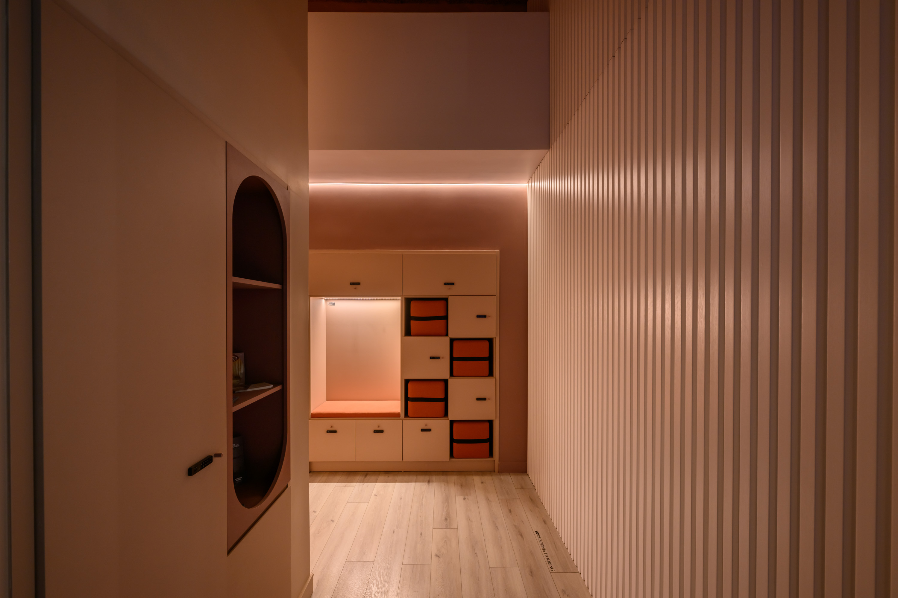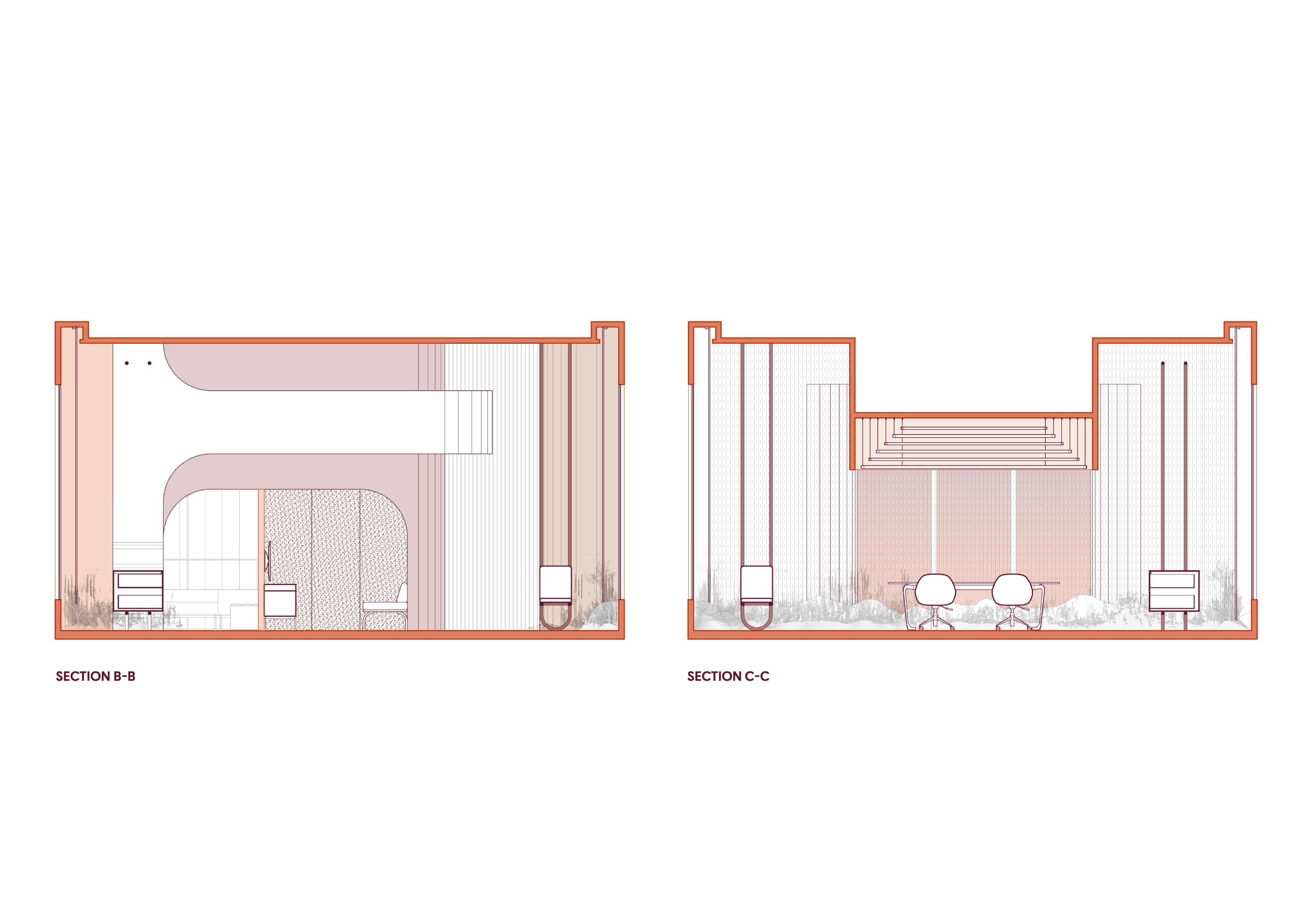 "Green Home Office" is based on two main ideas: hybridization and sustainability. In terms of hybridization, it seeks to merge the universe of corporate architecture with residential architecture, creating a flexible space that can be both a home and an office, depending on the user's needs and perspective. The project was created for the architecture and design exhibition Casa FOA 2024, in Córdoba, Argentina. The event, visited by over 40,000 people, took place in a building under construction called "Pocito", a complex of 137,000 m² that includes three 36-story towers, a shopping center, offices, and parking. Upon entering the home office, visitors pass through a barrel vault that compresses due to its low height, leading to a bifurcation that leads to two spaces: the immersive space and the central area.