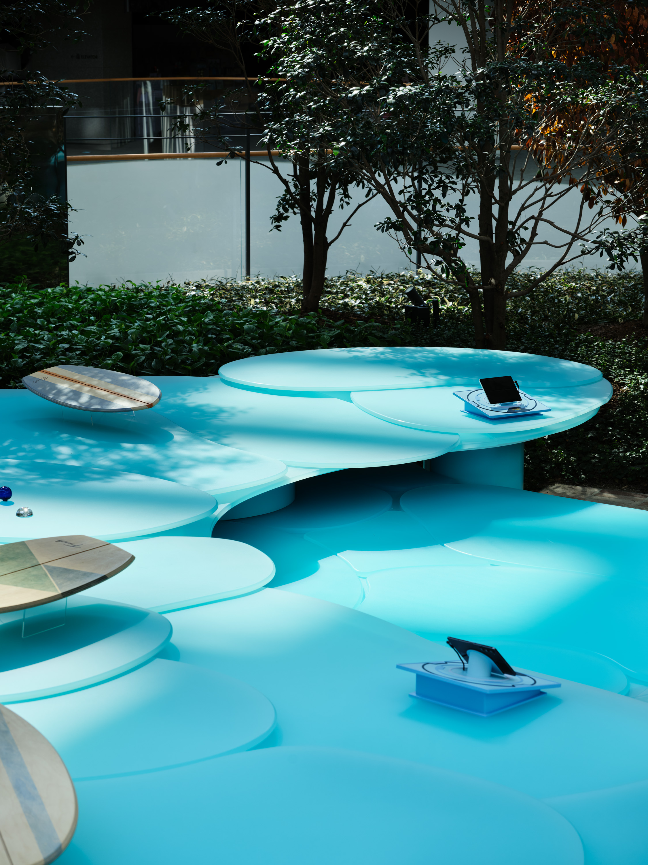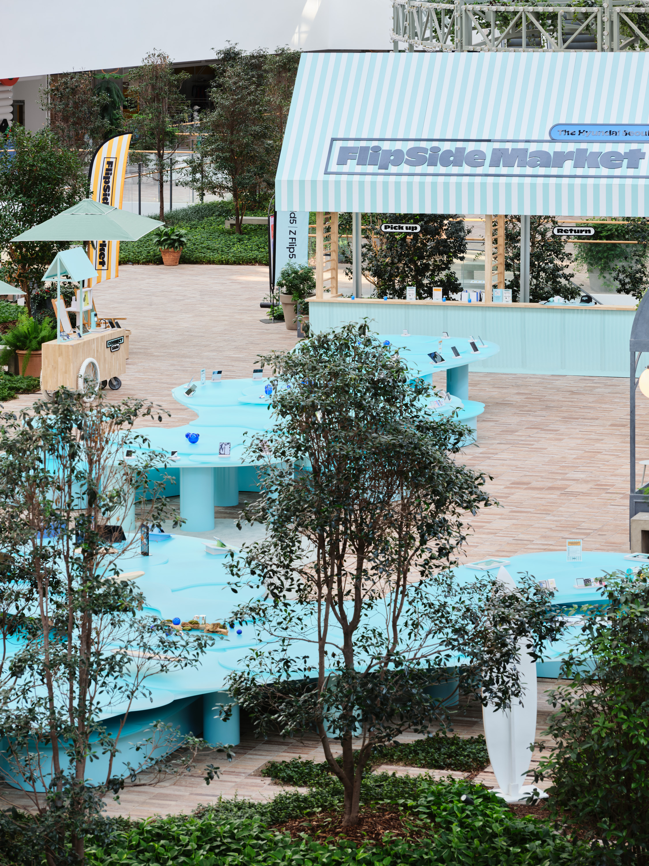 이번 팝업 테이블은 인디살롱의 시그니처 디자인인 ‘오아시스 테이블’ 디자인을 활용했다. 앉을 수 있는 테이블과 서서 쓸 수 있는 두 가지 형태로 다양한 연령대의 사람들이 모여 즐길 수 있는 테이블로 완성되었다. 더 현대 서울의 갤럭시 스튜디오 팝업 스토어는 도심의 편리함과 해변의 아름다움을 융합한 독특한 경험을 선사한다. 세심하게 디자인된 요소와 지속 가능성에 중점을 둔 이 프로젝트는 일반적인 팝업 스토어와는 다른 방문객들에게 새로운 차원의 즐거움을 선사한다.