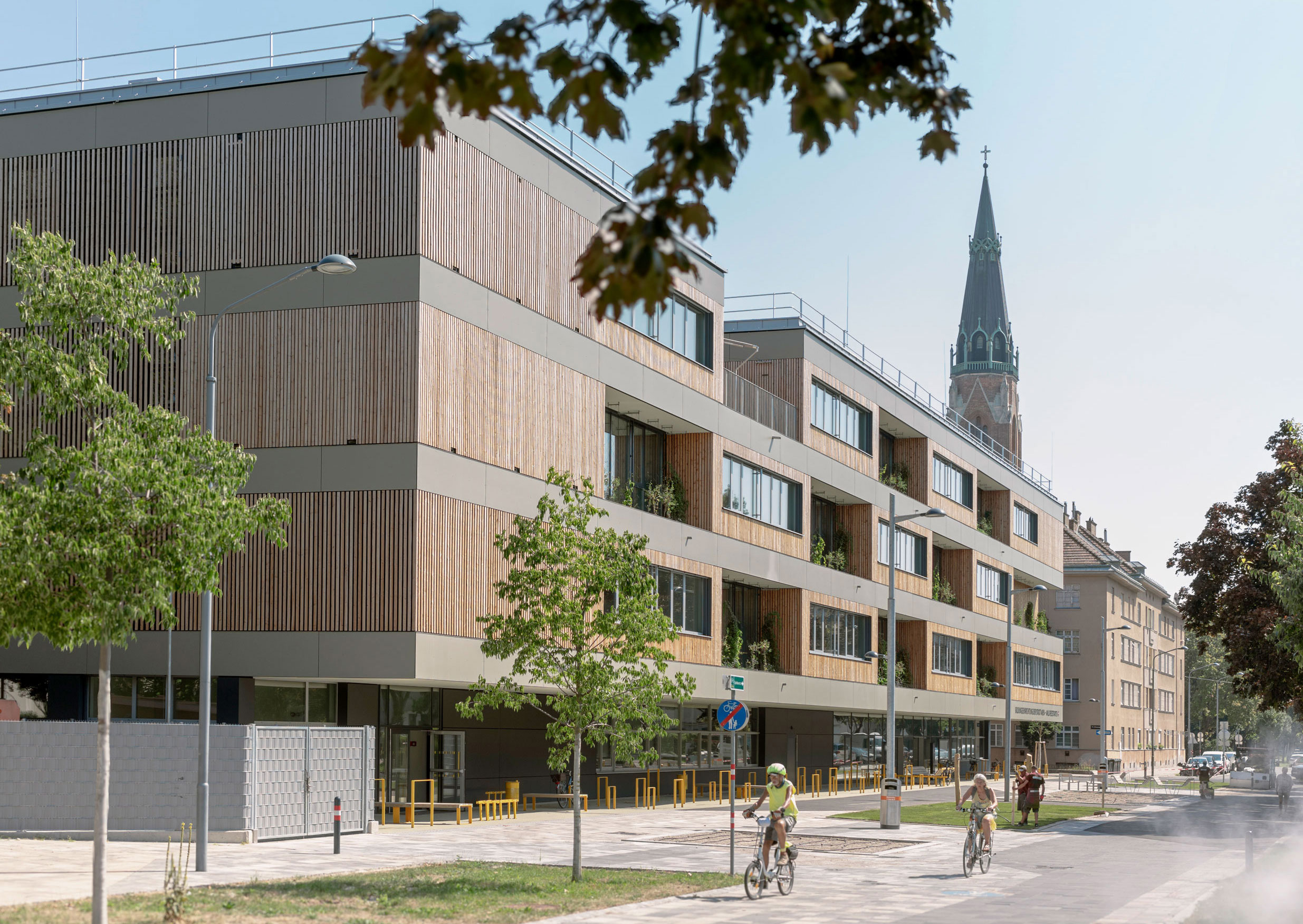 The thoughtful architecture extends to the outdoor area as well, where generous open spaces allow the children to play, learn and relax. Those areas are complemented by green terraces on the upper floors. Green façades not only improve the microclimate but also support Vienna’s "Urban Heat Island" strategy by helping to cool the surrounding environment.