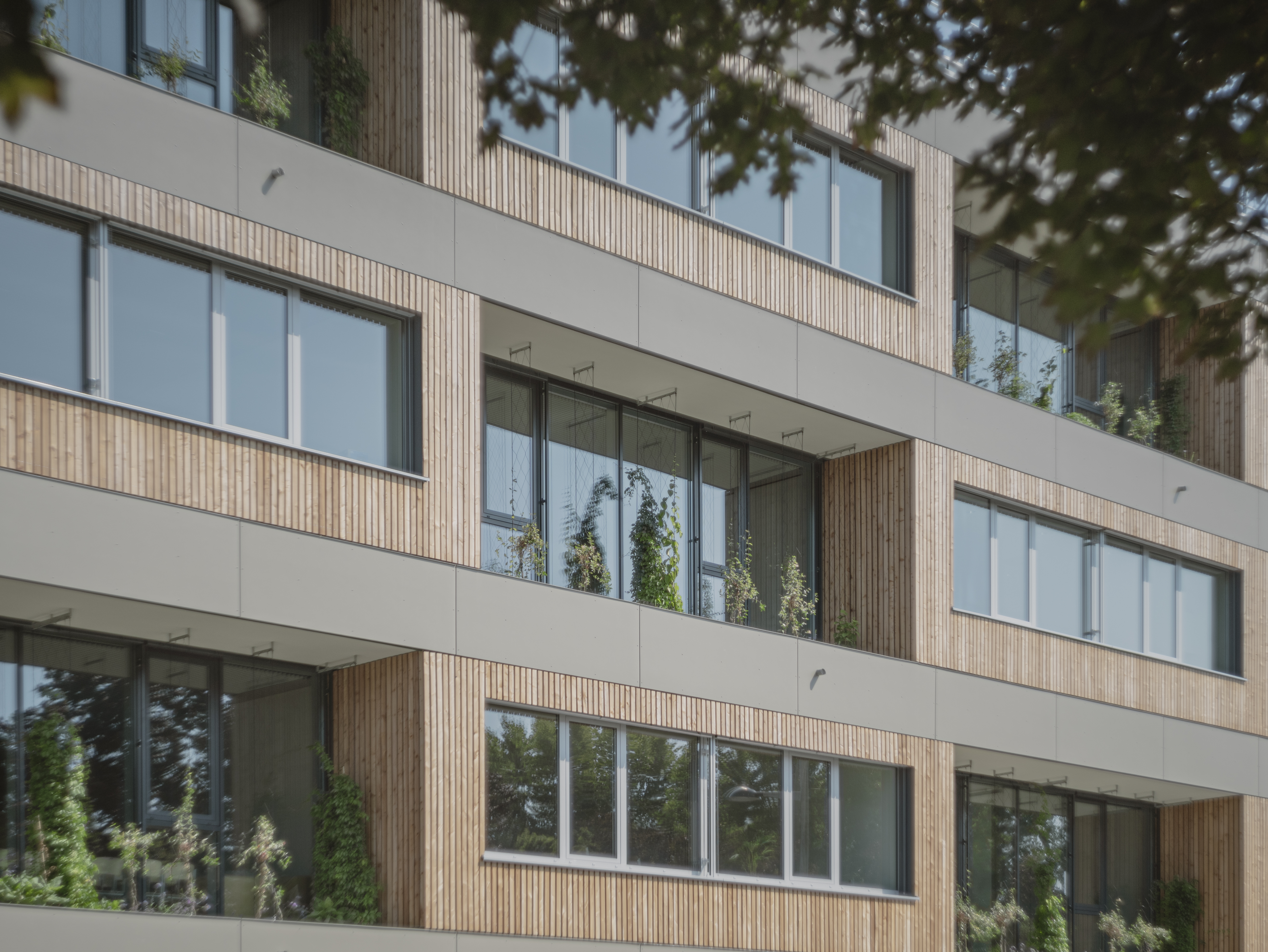 In terms of sustainability, the campus sets new standards. A photovoltaic system provides green energy, and the use of geothermal energy through thermal activation of building components contributes to cooling and heating the rooms. Rainwater is intelligently utilized, and nesting boxes for local wildlife such as swifts, bats, and jackdaws are integrated into the facade for the protection of native species.