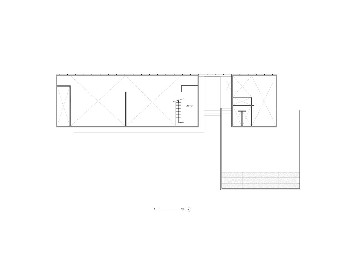 300㎡ 가 조금 안 되는 단층의 스튜디오는 존재를 드러내기 보다는 없는 듯 있기로 했다. 사진관은 사진을 찍는 곳이지 찍히는 대상은 아니라는 생각에서 그리했다. 그래서 가장 단순한 형태로 무심하게 숲 속에 파묻히게 했다.