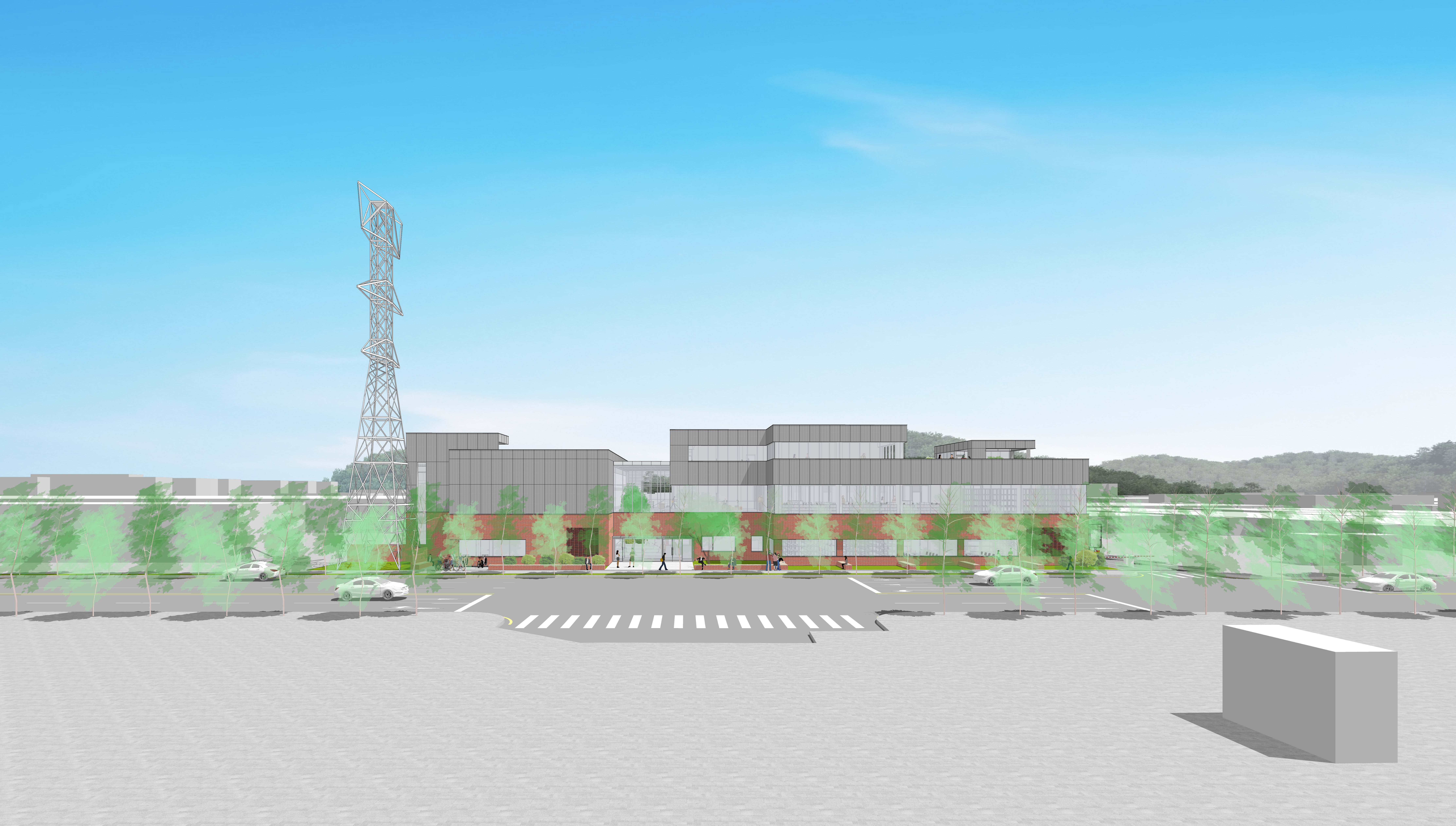 이에 가로방향으로 길게 뻗어 주요 경관을 구축하고 통합이 가능한 EMC 실험동과 신뢰성 실험동의 프로그램실과 로비를 통합하여 유기적으로 연결하고 진동이 발생하는 진동시험기 실험동은 별동으로 단지 깊숙한 곳에 배치하였다.