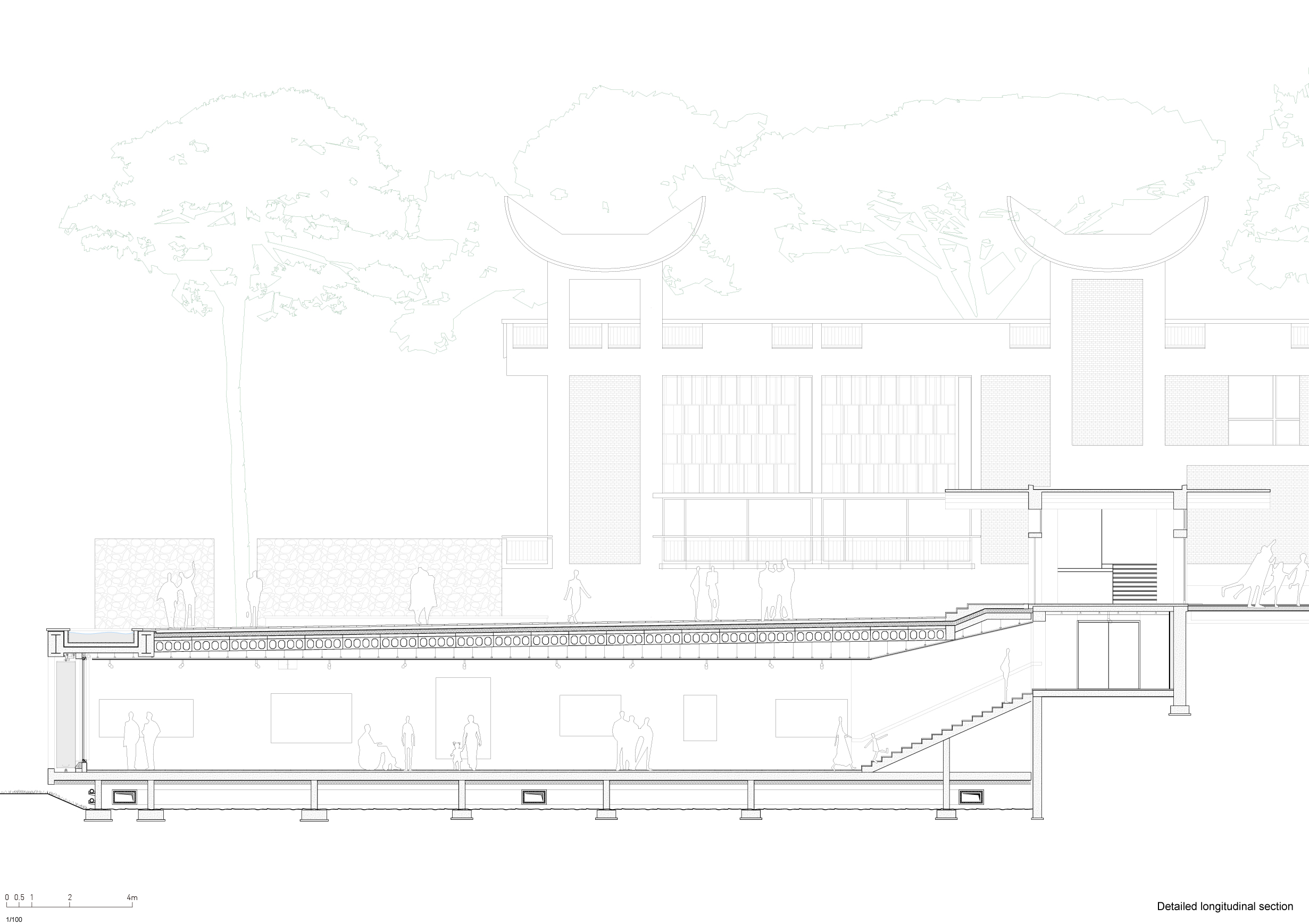 A gallery provides the connection between these two volumes and adopts the sinusoidal shape of the Miró terrace which is above it. Of different sizes – 392m2 and 66m2 respectively - the rooms maintain the same relationship of proportions. The largest, accessible via a beautiful introductory gallery from an existing renovated technical space, is a free volume about 14m wide by 28m long. A strong desire of the extension is to extend the original museographic tour in a loop, while maintaining the immediate natural contact between the interior and the exterior that makes the magic of the Foundation. In the end, the notion of a major route at the Maeght Foundation is preserved, the architecture of Sert is in no way affected and the soul of the place is preserved although we are increasing the surface area by 65%.