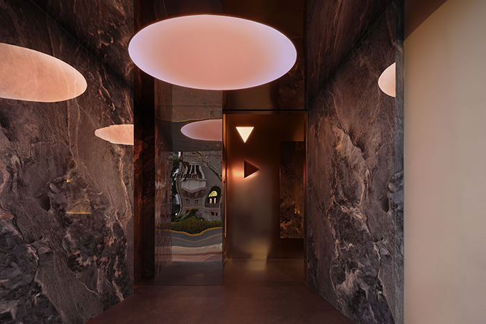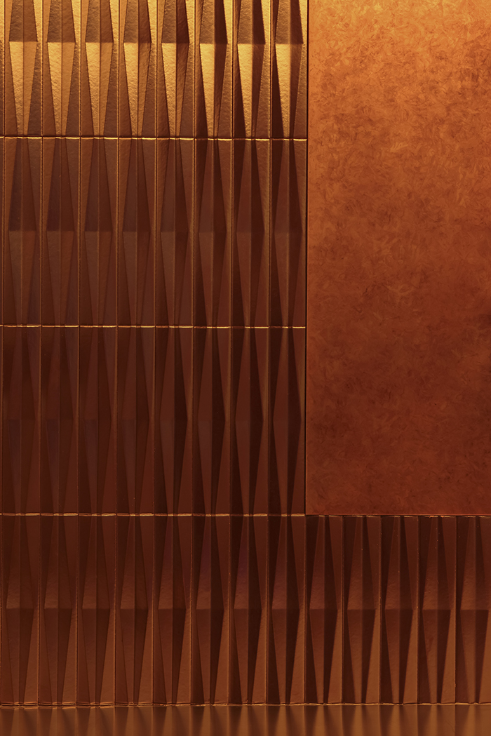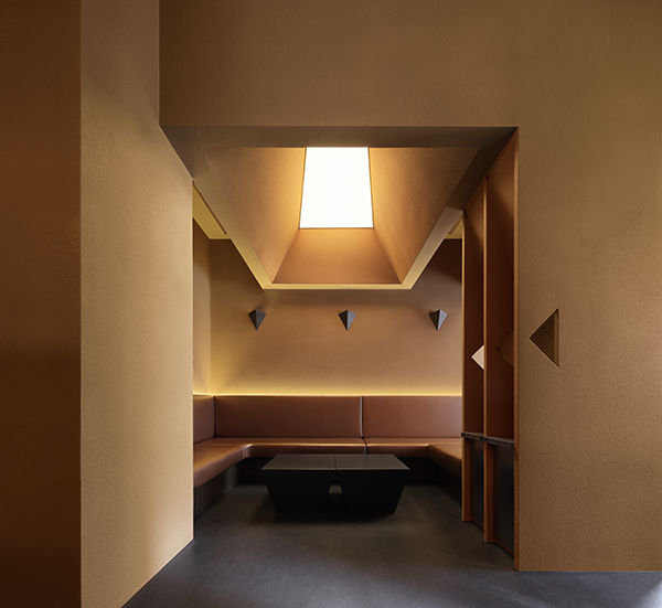The design of the ceiling molding aims to hide the M&E equipment such as air conditioning and lighting as much as possible, while showing the texture of the building itself. We chose to expose part of the original beams so that the ceiling design achieves the most simple and direct effect. In the ceiling design, we used the shape of origami structure, and through the combination of the shape and the lighting, the light and shadow also show the geometric form of triangles. This design not only creates a rich sense of spatial hierarchy visually, but also effectively integrates the building system functionally, ensuring the integrity and aesthetics of the space.