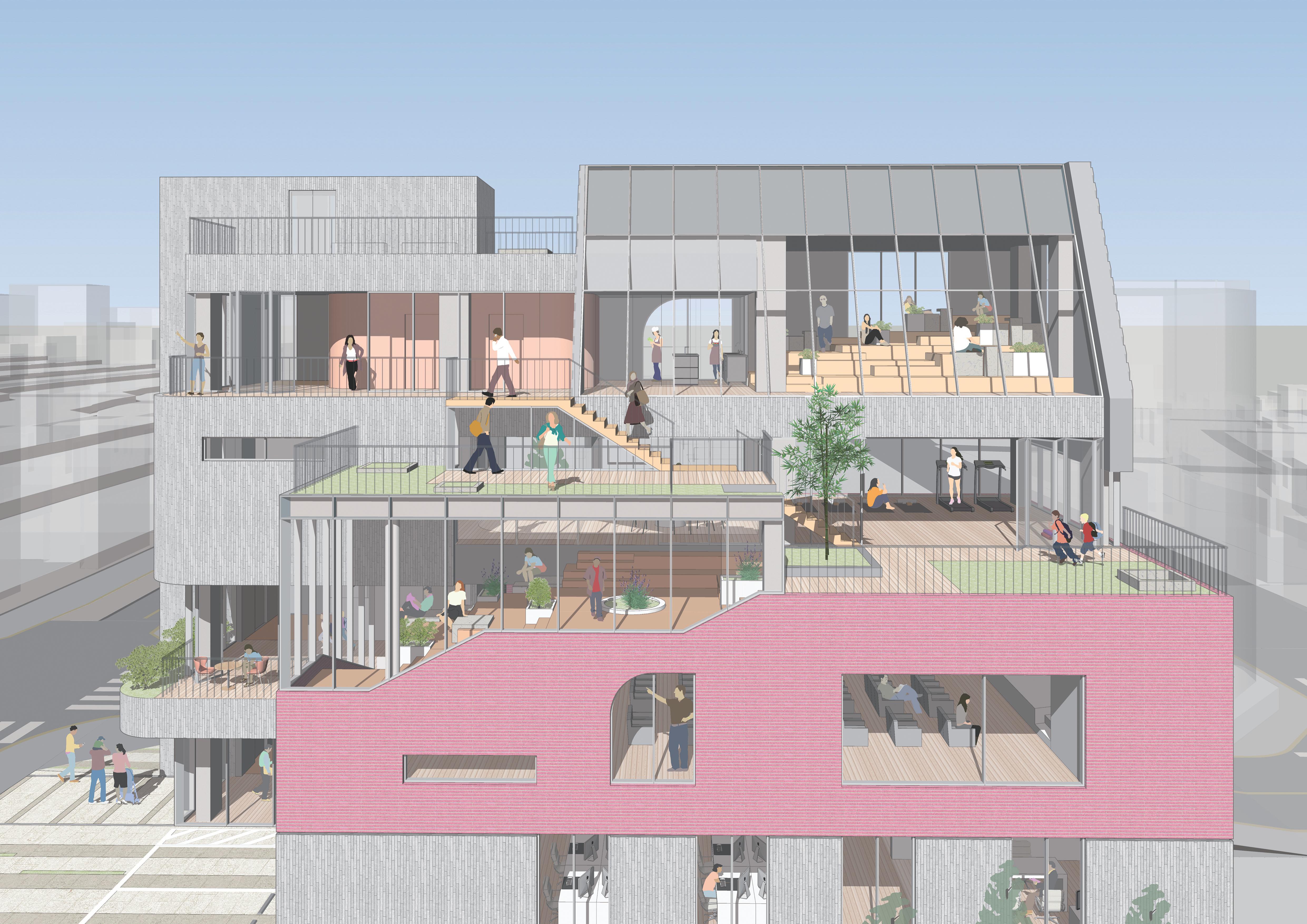 내·외부 공간의 상호적 연계와 다층적 커뮤니티 공간을 통해 소통과 어울림의 공간을 만들어낸다.
