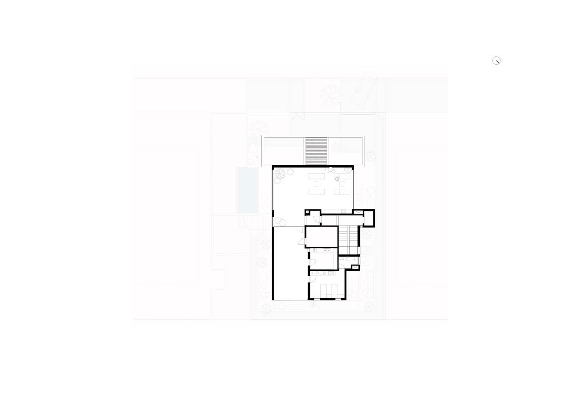 The villa's travertine plinth extends outward, carving interstitial spaces that offer varying degrees of privacy depending on their location. Public spaces, such as the living and dining areas, open directly onto the pool, while private spaces benefit from their own secluded open nooks, ensuring intimacy and seclusion. These strategically placed interstitial spaces balance communal openness and personal retreat, contributing to a holistic design that maximizes functionality and spatial efficiency.