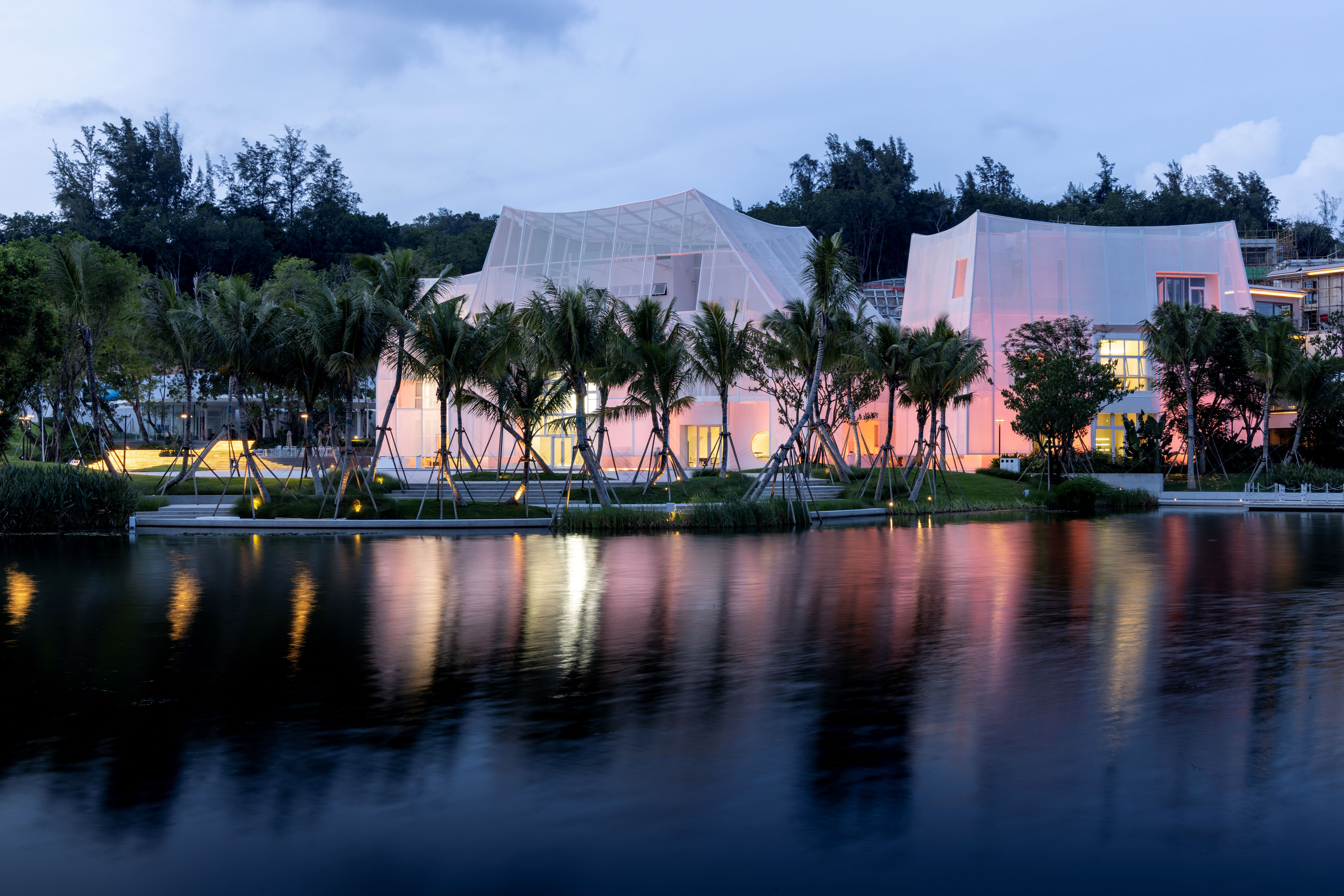 In 2024, the Flickering Peak, designed by Wutopia Lab, was completed in Coffee Village, Wanning, Hainan. The Sun River Art Center, covered with a semi-transparent white Ferrari membrane composed of three perforation rates, was built on the site of a coffee plantation developed by returned overseas Chinese from Indonesia. With its dramatic visual expressions during day and night, it has become a cultural landmark symbolizing miracles and hope in the local area.